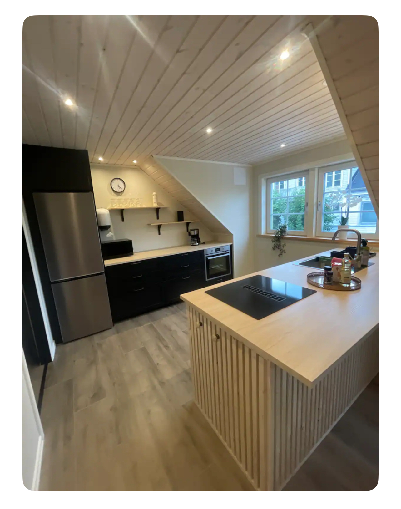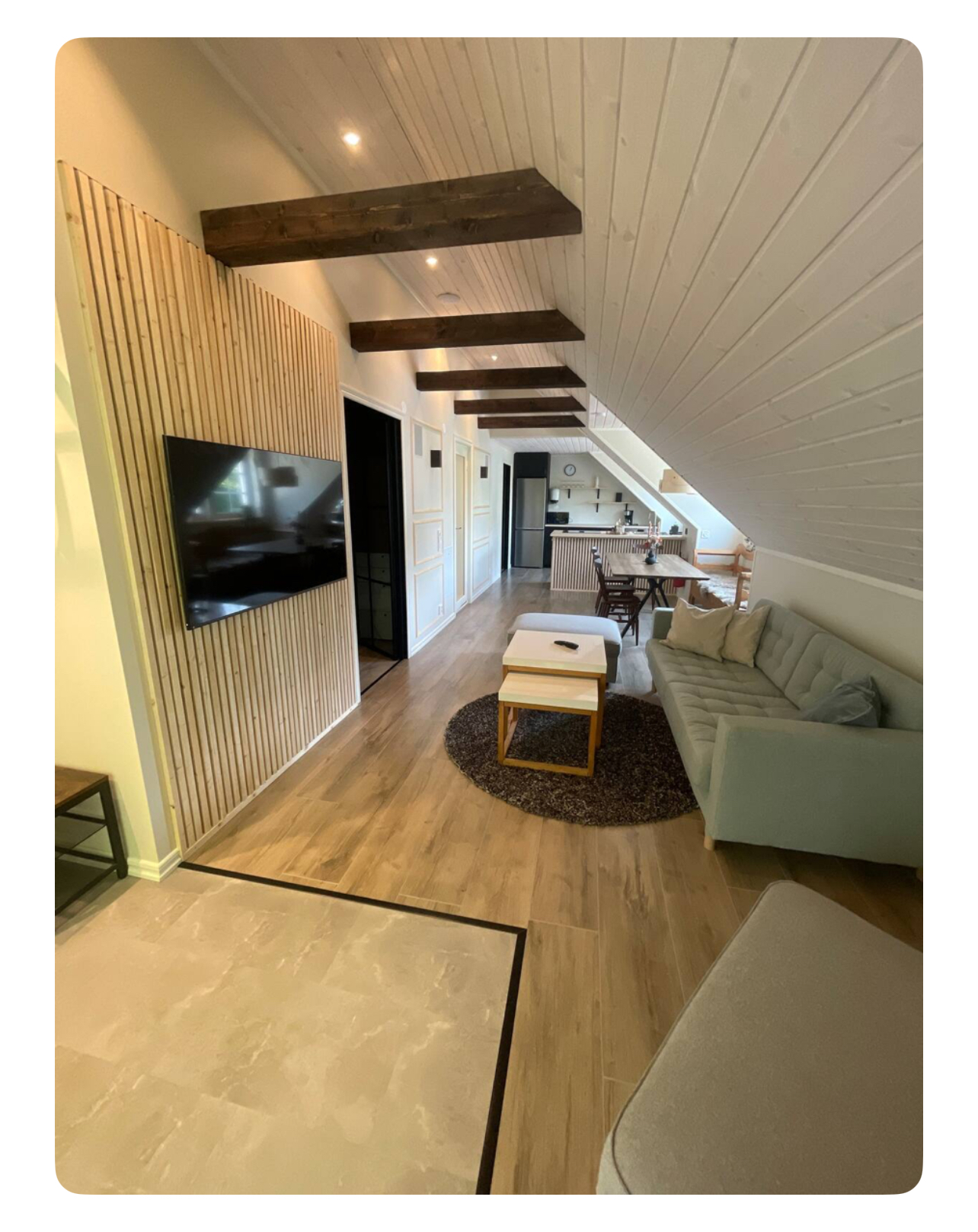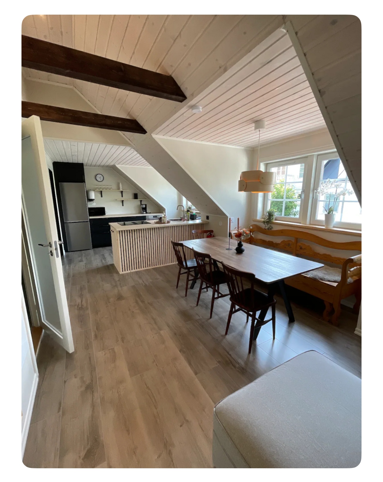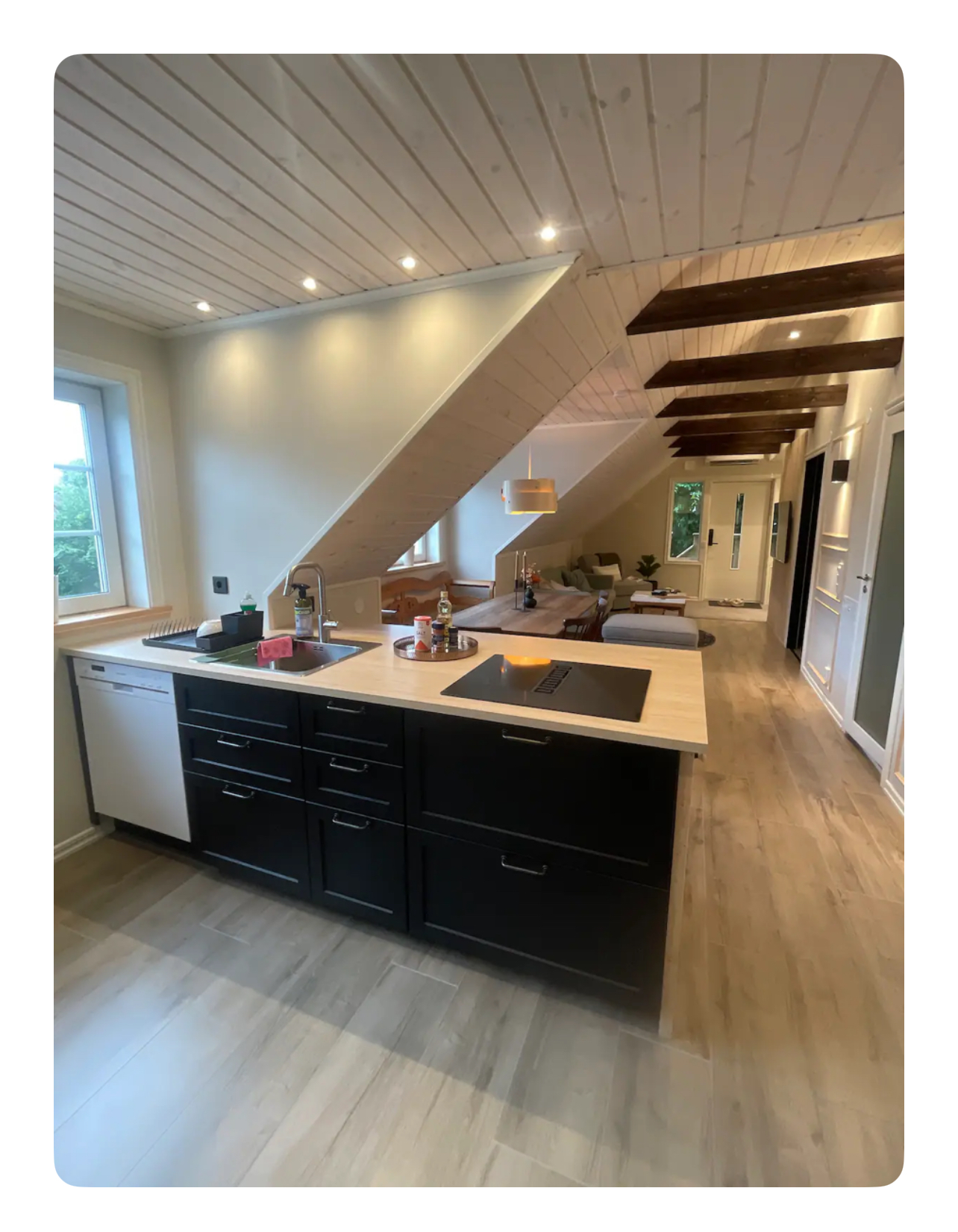 Denna lägenhet hyrs ut för kortare tid. Den är färdig möblerad. Välkomna till vår nybyggda vindsvåning som ligger i fristående byggnad på värdparets tomt. Fantastisk miljö både på in och utsida. Slappna av, lyssna på musik och umgås, max 5 personer. Det är nära avstånd att cykla, gå eller ta bilen till affären, pizzeria och thaimat i Asarum. 6 km till Mörrumsån (kronolaxen) Har du möjlighet så ta med cyklar och ta en tur längs den fina cykelvägen in till fantastiska Karlshamn innerstad, ca 6 km. Asarums närmsta busshållsplats, ca 1 km. Du som bokar boendet måste vara vara en av dem som bor i boendet. All viktig information inför incheckning, under vistelse och inför utcheckning meddelas. Det är det antalet personer ni bokar för, som får vistas i lägenheten. (max 5 personer) Alltså inga besökare, om vi inte har kommit överens om något annat. INGÅR EJ SLUTSTÄDNING I HYRAN Lägenhet ska lämnas i samma skick som när ni kom till lägenheten. Städkontroll görs. Vill ni boka slutstädning kostar det 1000kr. Är inte städningen godkänd blir ni debiterade 1000kr. Bokar du en hel månad blir det rabatt, däremot ingår ej elen, den tillkommer om du bokar hel månad. I boendet: 2 sovrum med 2 enkel sängar i varje rum, totalt 4 enkel sängar. Sängarna är EJ FLYTTBARA Om ni vill hyra sängkläder, stor och liten handduk under er vistelse kostar det 120kr/uppsättning (per person). När ni anländer till lägenheten kommer det finnas en kökshandduk. (Lägg i tvättkorgen som står på toaletten vid utcheckning). Samt om ni hyr sängkläder och handdukar, lägg dessa också i tvättkorgen vid utcheckning. Läs vår husmanual innan och under incheckning. Där finns beskrivet hur du använder bäddfåtölj, Wi-fi, hur du får igång musiken, TV, hur du kan ställa fönsterna i vädringsläge, tvättmaskin samt värmepumpen. Uppvärmningen är en luft/luft värmepump som är förinställd på 21 grader. En bäddfåtölj jämte soffan med plats för en person. I fotpallen finns tillhörande täcke, kuddar och madrasskydd till bäddfåtöljen. Har du bokat boendet för ett visst antal gäster, då är de det antalet som gäller under vistelsen. Vill man bo fler än det så kostar det extra per gäst/per natt . Max 5 får plats i boendet. Parkering för endast EN personbil, parkera framför anvisad parkeringsskylt. TVn är en smart TV, ni behöver ha egen streaming inlogg till tex Netflix, viaplay eller vad ni nu har för streaming tjänst. Det är 2 stycken bluetooth högtalare som är inbyggda i väggen om man vill koppla upp sig och lyssna på musik via Spotify. Det finns salt, peppar, grillkrydda, bakplåtspapper, plastfolie, aluminiumfolie och rapsolja att tillgå i köket. Öppen planlösning där TV, matrum och kök är i ett. En toalett med dusch och tvättmaskin. Hårtork finns i en av lådorna inne i toaletten. Behöver du tvätta kläder måste du ha med eget tvättmedel och sköljmedel med dig. Tvättställning finns i städrummet. Hårtork finns i badrummet i en av lådorna.