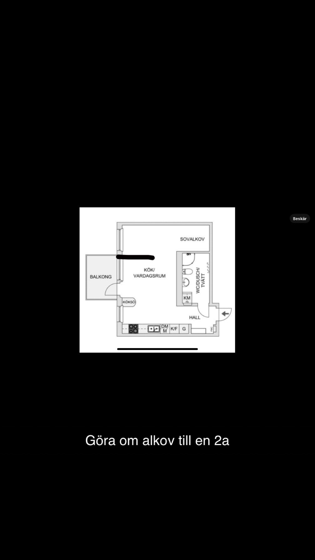 Lägenhet, 2 rum, 45 kvm, Hovås