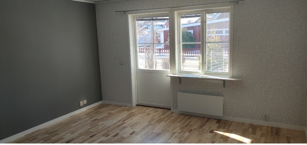 Markplanslägenhet i parhus, med uteplats i söder och egen tvättmaskin och torktumlare och diskmaskin. Lägenheten renoverades för ungefär två år sedan.