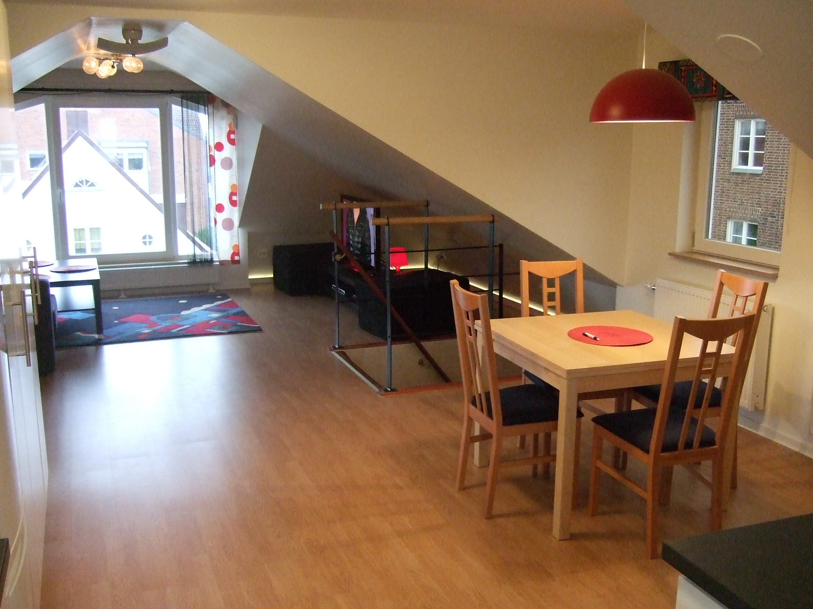 Uniquely designed studio apartment on the third floor of a private villa. The location is close to Campus, the hospital, and about 5 min walk to the center. Access is via separate entrance/staircase (not through the familys apartment). We rent out including furniture, a fully equipped kitchen - with dishwasher, induction stove, oven, fridge, freezer, microwave oven, toaster and electric kettle water, heating and the use of laundry and garden, with fruit trees and barbecue. You pay 900 kr for electricity, fast Internet (fiber), cable-TV (Canal Digital), and you can use a parking place on the property. This uniquely designed penthouse apartment with about 70 sqm floor area, plenty of nooks and crannies (sloping ceiling), has large dormer windows with views overlooking the sea and Denmark, separate area for dining, two sleeping areas and living room with a large sofa and a 40 inch TV. Walking distance to sport arenas (Olympia) and nature trails (Jordbodalen). Good bus connections, proximity to many different shops, open air market, restaurants, gyms etc. NOTE: We require residents to be non-smokers, and no pets or children under 10 years (due to windows and steep staircase). Rental period: September/October until end of April, minimum 3 months. 9 800/month The advertised rent includes two persons. The apartment can accommodate 2-4 persons comfortably, and is suitable for two adult singles sharing the rent, or a couple (with 1-2 children). The rent is calculated depending on length of stay and number of occupants. May-August we rent out per night or weekly, based on number of persons, from 900/n 4950/w We are not strict on income and references, personality is more important. A deposit is required that will be refundable at the time of departure. Before you come to see the apartment, please submit your requirements, where you tell us a bit about yourself/selves, occupation, from when you want to rent and how long. We speak English and Swedish.