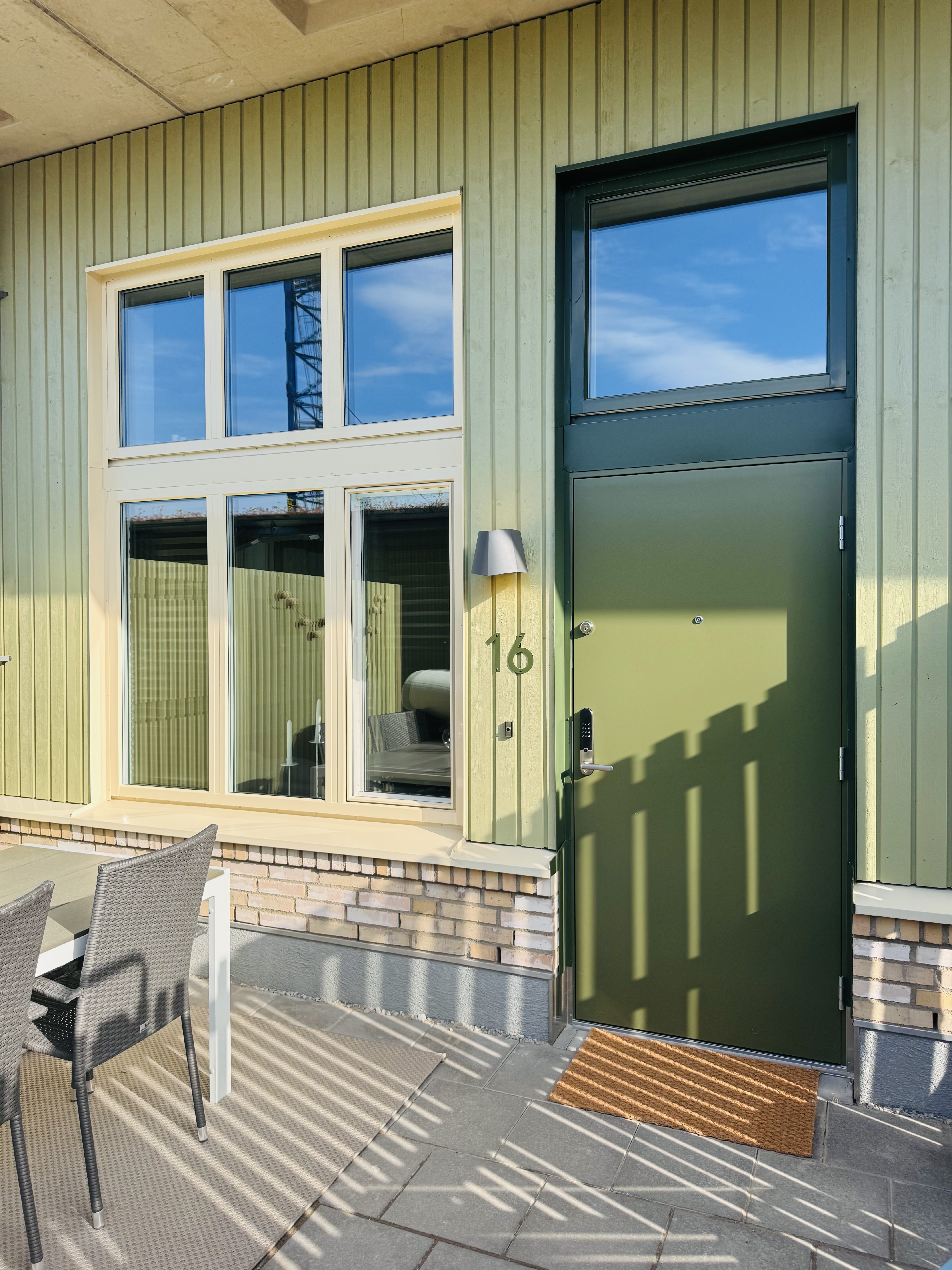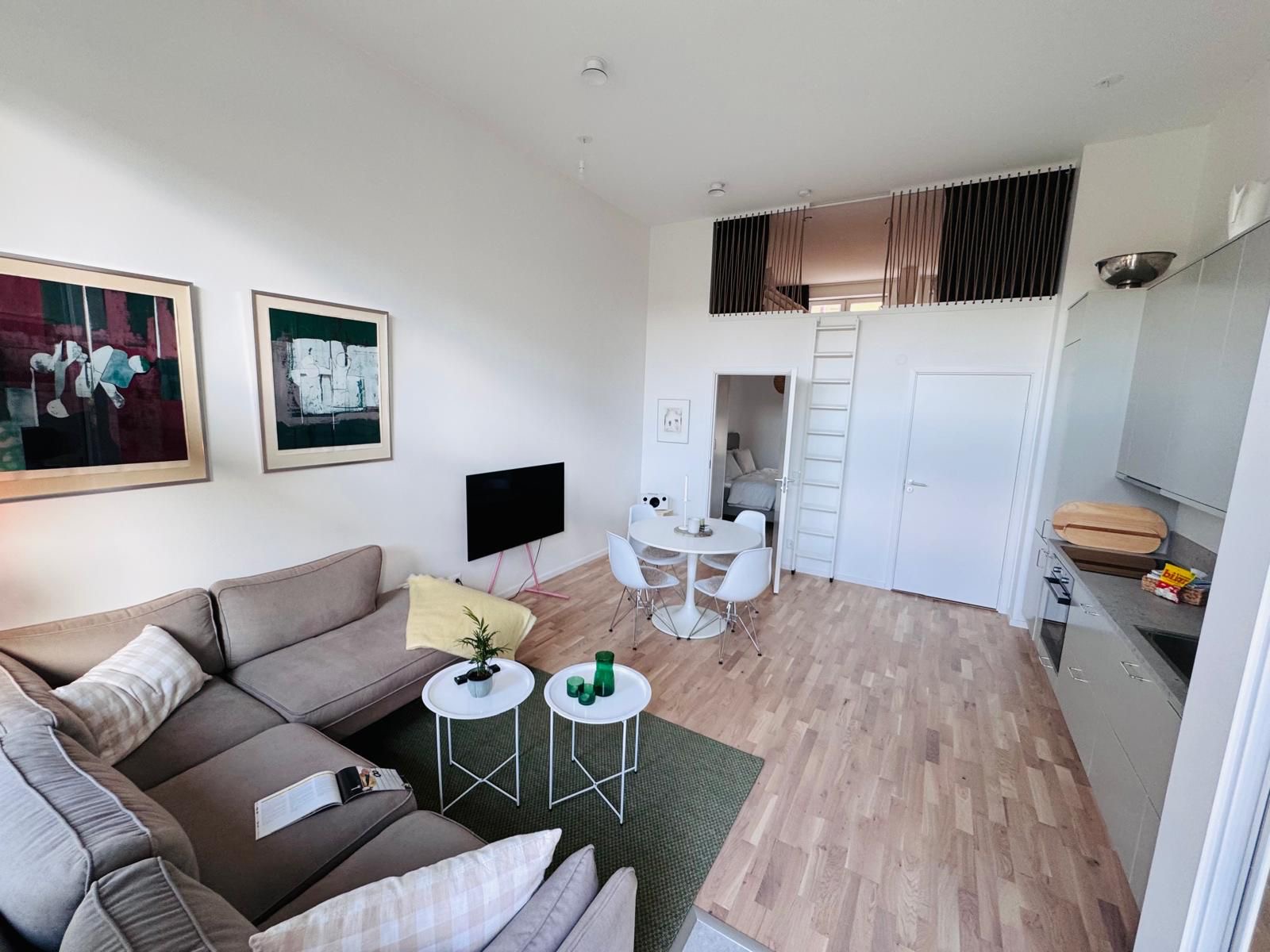 Nyproducerad ljus lägenhet i två plan med stor takterass nära hamn, strand centrum. Hela lägenheten är ljus och med gedigna materialval. Fullt utrustat kök badrum med kombinerad tvättmaskin/torktumlare. Sovrum med Hästens dubbelsäng, garderob och sängbord. Vardagsrum och kök i öppen planlösning med matbord och soffgrupp. Övervåning med bäddsoffa för två personer och skrivbord. Utgång till terrass på 27 kvadratmeter. 1 km till Lomma Station med tåg bussar till bl a Lund, Malmö Köpenhamn. Följande ingår inte i hyran: - Parkering - kan hyras för 1000 kr/mån (plats utomhus med laddstolpe - el faktureras utanöver månadskostnad). - El varmvatten - faktureras efter användning