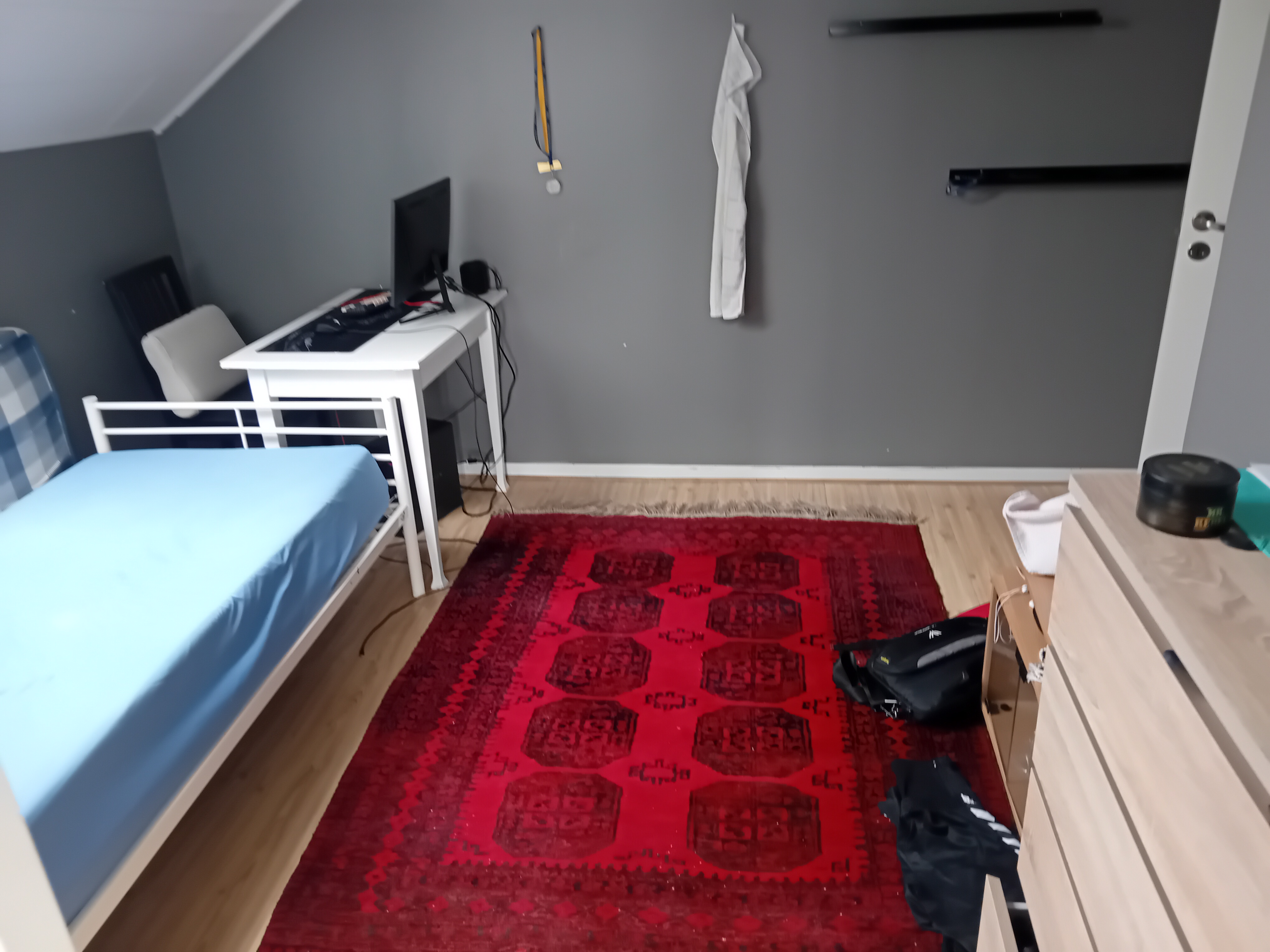 Sjurums lägenhetr hyrs ut till en person med ordnad ekonomi deposition eller borgenär krävs. Uppvärming vattenförbrukning står hyresgästen för. Lägenheten har 2 plan med ingång på husets andra våning. Första plan finns kök, badrum 1 sovrum allrum. Andra plan finns 4 sovrum 1 badrum. Det finns balkong, förråd och parkering ingår.