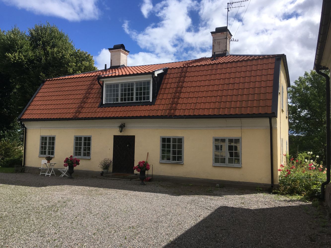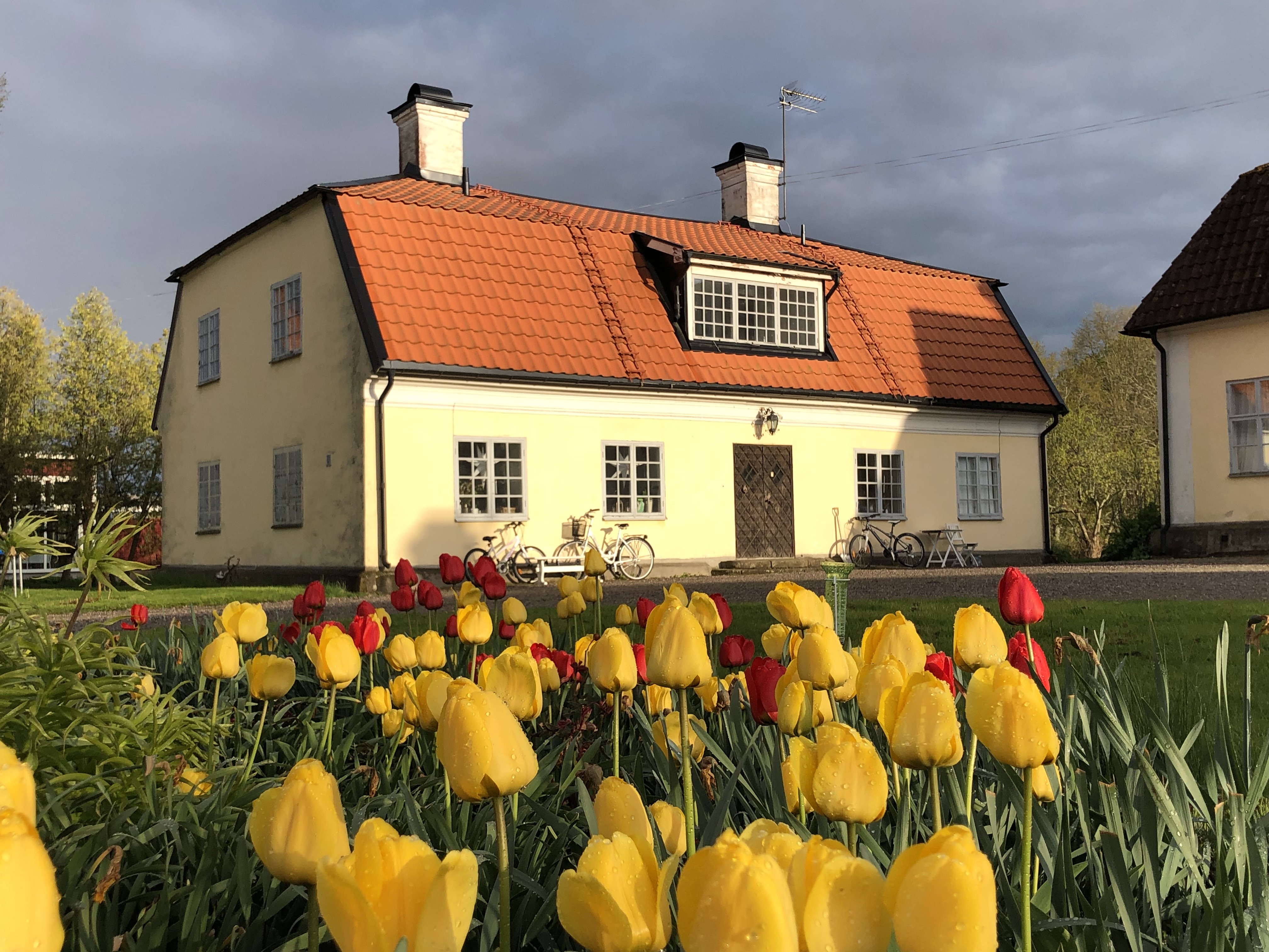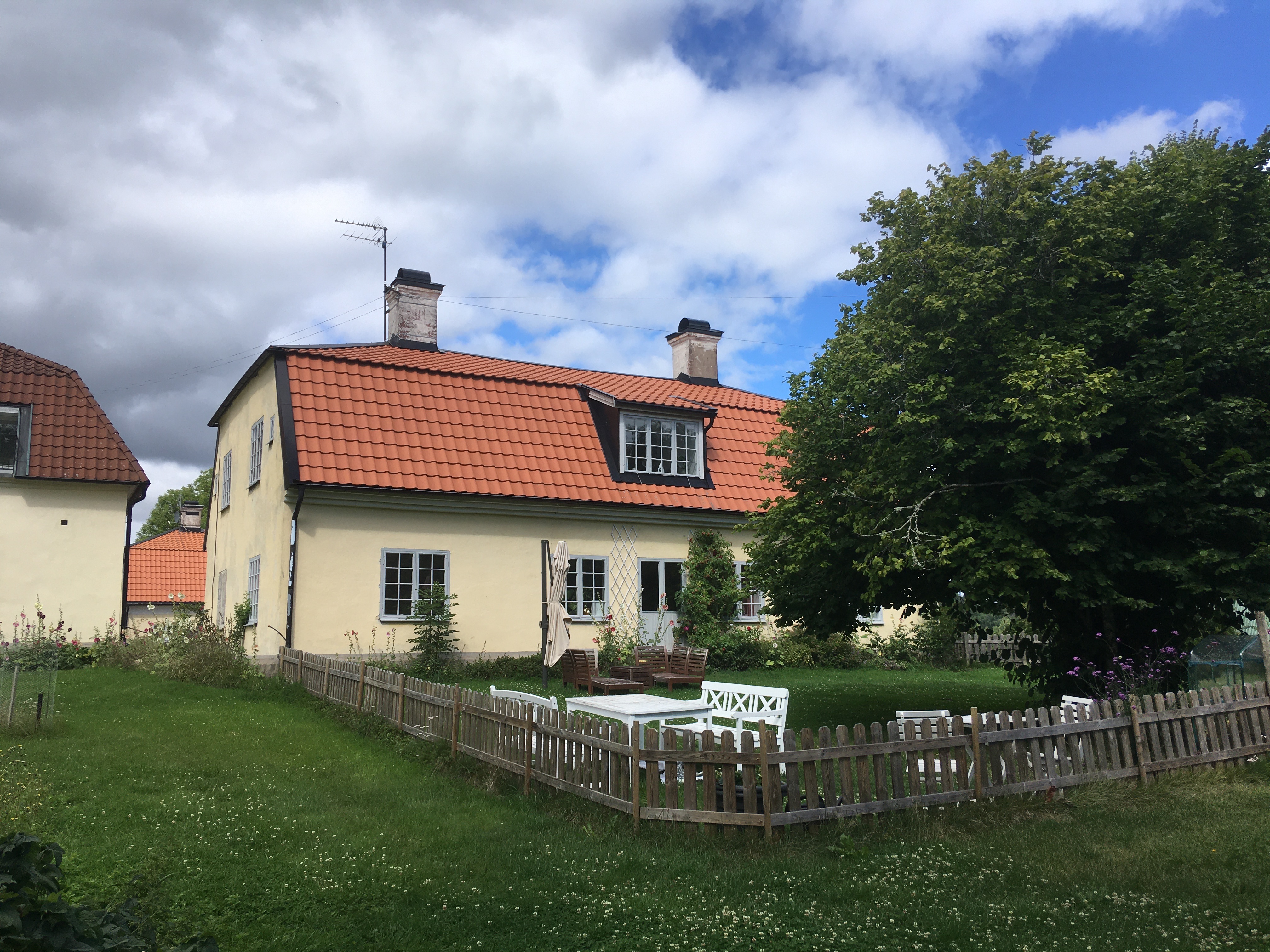 Östra Flygeln på Stjärnhovs säteri ligger vackert i Sörmland på en kulle med utsikt över sjön Naten. Trivsamt boende med varmhyra i denna 1700-tals flygel med fungerande blomstermönstrad kakelugn i hörnrummet på nedre plan och öppen spis med marmorkrön på övre plan i rymligt vardagsrum. Nymålat invändigt i vitt med grå snickerier. Vackra, spröjsade fönster och generösa sällskapsytor. Fem möjliga sovrum, varav 3 på övre plan, eller som kontor för hemarbete. Gott om förvaring i hallen och i garderober i kattvindarna. Ett duschrum på nedre plan och gäst WC i anslutning till hallen. Två badrum på övre plan. Ett med dusch, wc och två handfat i anslutning till de två mindre sovrummen. Ett nyrenoverat (2023) helkaklat badrum med separat dusch och badkar, en suite till master bedroom. Huset är rymligt och kan eventuellt delas av två familjer, eller fungera som generationsboende, med gemensamt kök. Stort och trevligt kök i 30-tals utformning på nedre botten med lägre arbetshöjd längs fönstren, men normal standardhöjd vid spis, diskbänk och diskmaskin. Skafferi i yttervägg och bra förvaringsutrymmen i köket. Plats för normalstort matbord. Tvättmaskin och toktumlare i separat tvättutrymme under trappan. Hyran är varmhyra med uppvärmningen från bergvärme. Kostnad för hushållsel och egen internetlösning tillkommer. God täckning. Egen trädgård på baksidan med staket omkring, som lämpar sig för husdjur eller små barn. Möjlighet till trädgårdsland och att odla. Lantligt lugn med skogen runt knuten, promenadvägar och badsjö men ändå nära Södertälje och Stockholm. Möjlighet till stallplats och beten. Finns fullstort ridhus och uteridbana och fina skogsvägar för uteritter. I samhället finns välsorterad Ica, skola F-6 klass och bussförbindelse till Gnesta. Till Stockholm tar det ca 75 min att köra bil. Goda pendlingsförbindelser från Gnesta till Stockholm, 36 minuter med snabbtåget. Till Gnesta kör man på 15 minuter och det finns också bussförbindelse från Stjärnhov. Möjlighet till carport och båtplats på gården. Laddbox för elbil finns, kostnad för el tillkommer. Huset uthyres omöblerat tillsvidare. Inga betalningsanmärkningar hos intresserade. Välkommen med din intresseanmälan