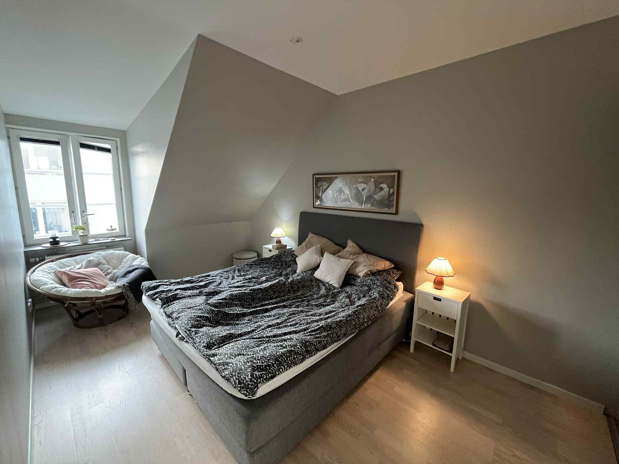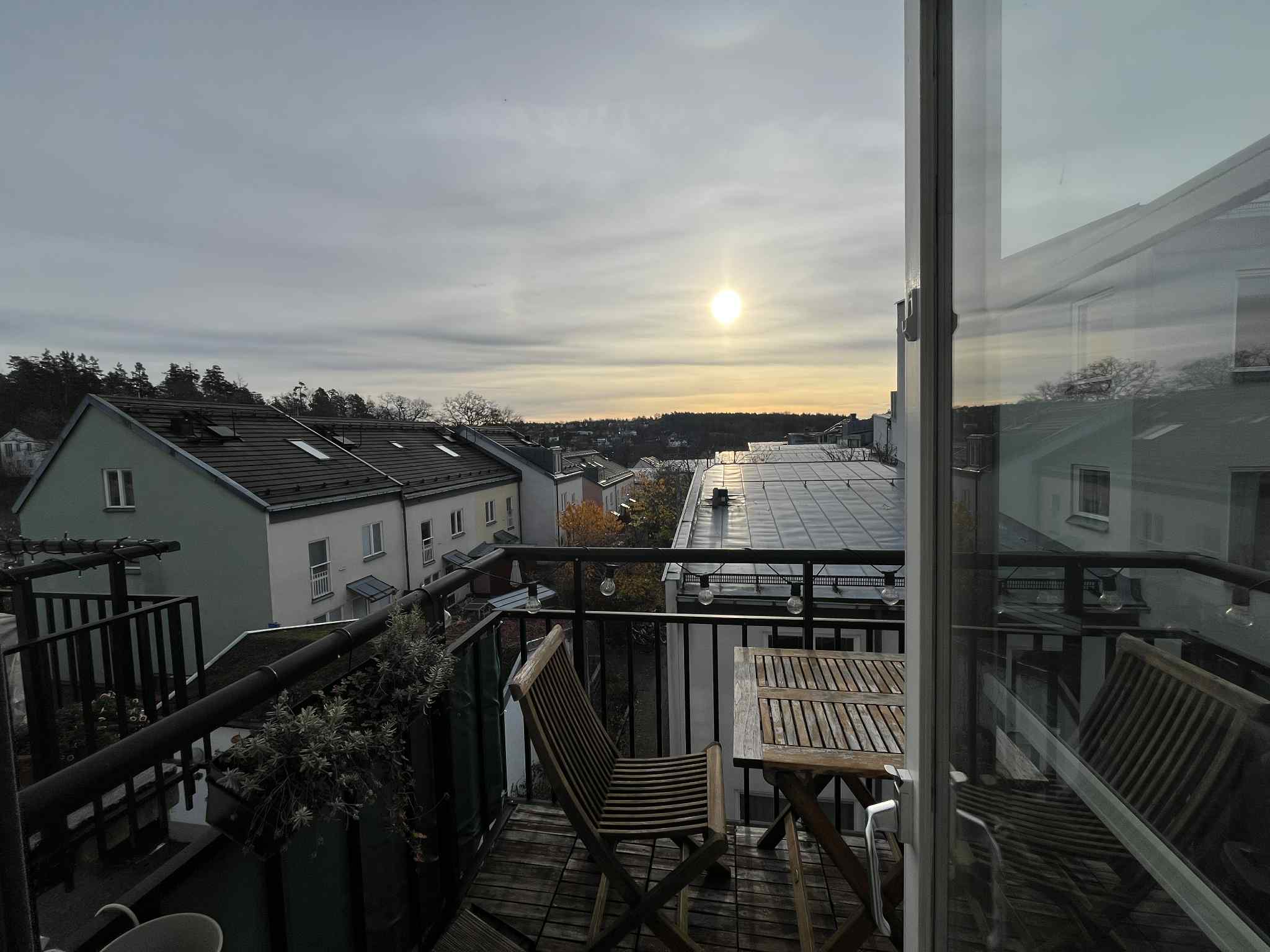 Fin 3:a med balkong och sjöutsikt Järla Sjö, Nacka Uthyres möblerad i 5 månader pga arbete på annan ort under våren. Härlig och ljus 3:a på 82 m högst upp i huset med balkong i söderläge och utsikt över hustaken och Järla sjön. Charmig vindslägenhet med snedtak och genomgående fint skick. Stort sovrum med skjutdörrsgarderober och ett mindre rum som passar perfekt som kontor eller gästrum. Lugnt och grönt läge i populära Järla Sjö, nära strandpromenader, badbryggor och natur. Kort gångavstånd till bussar mot bl.a. Slussen. Nära Sickla Köpkvarter och Nacka Forum med butiker, restauranger och service. Boendeparkering och cykelförråd finns. Perfekt för dig som söker ett lugnt, bekvämt och välskött boende med närhet till både natur och stad.