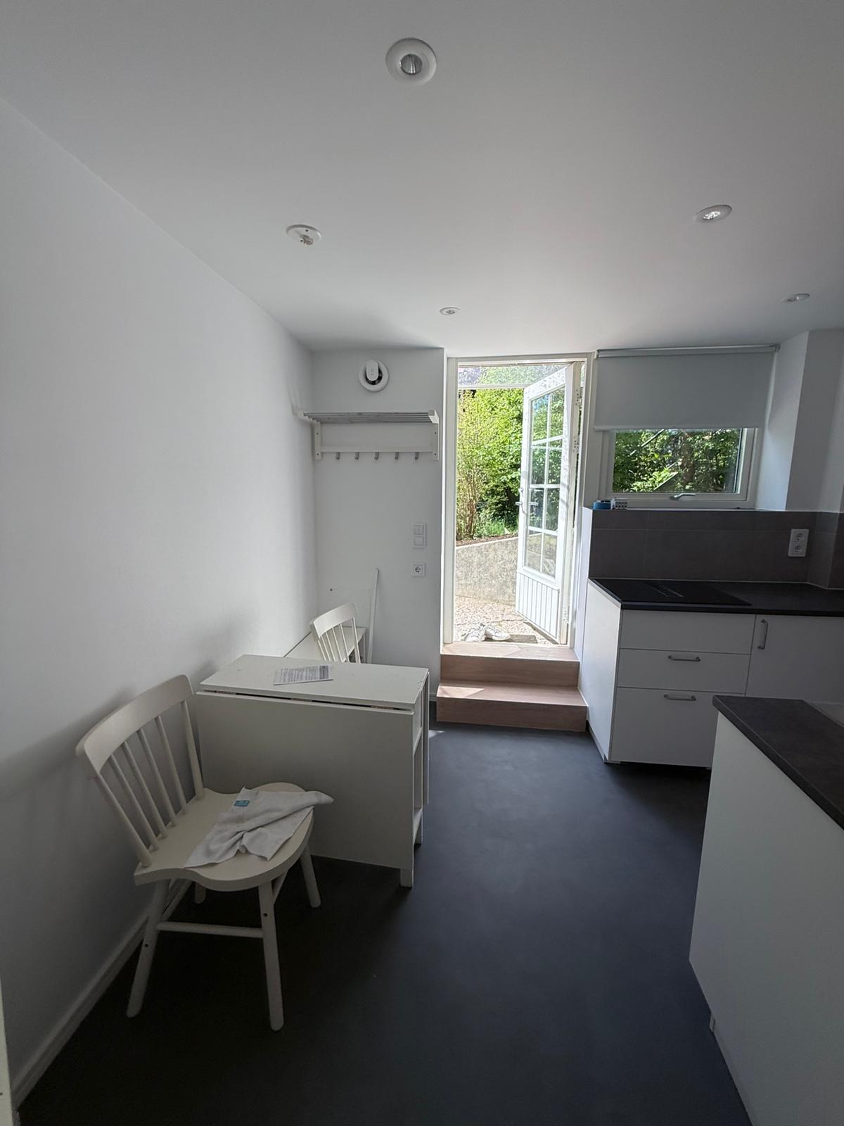 Nyrenoverad lägenhet med trädgård 15 min från Stockholms city I ett lugnt och tryggt villaområde i Stockholm 15 minuter från Slussen finns en härlig och nyrenoverad källarlägenhet med egen privat trädgård i söderläge med gräsmatta, odlingsmöjligheter, m.m. 100 meter till badbrygga. Planlösning Trappa för nå lägenheten Trädgård med uteplats insynsskyddad och privat Kök m matplats för fyra Allrum med bäddsoffa och skåp Sovrum med enkelsäng och dusch och tvättpelare Separat toalett med ingång från kök Kommunikationer 5 minuter gångavstånd till buss som går till Slussen dygnet runt. 15 min gångavstånd till Saltsjöbanan och flera bussar Om området: 100 m till badplats med brygga 1 km till badplats med strand - Sickla strand Nackareservatet runt knuten 5 min gångavstånd till Sickla köpkvarter med bl.a. mathall, restauranger, fik, Willys, Ica, Systembolag, Apotek m.m. Nära både naturen och stan Hyreskontrakt erbjuds till en eller två personer med 2 månadshyror i deposition och två månaders ömsesidig uppsägningstid. Rökfria, skötsamma och bilfria hyresgäster önskas. 11500 kr 500 kr i fast avgift för el, värme, vatten, sophämtning och bra WI-FI baserat på fiber per månad. Eller via Qasa utan deposition men 5,95 påslag för adminavgiften.