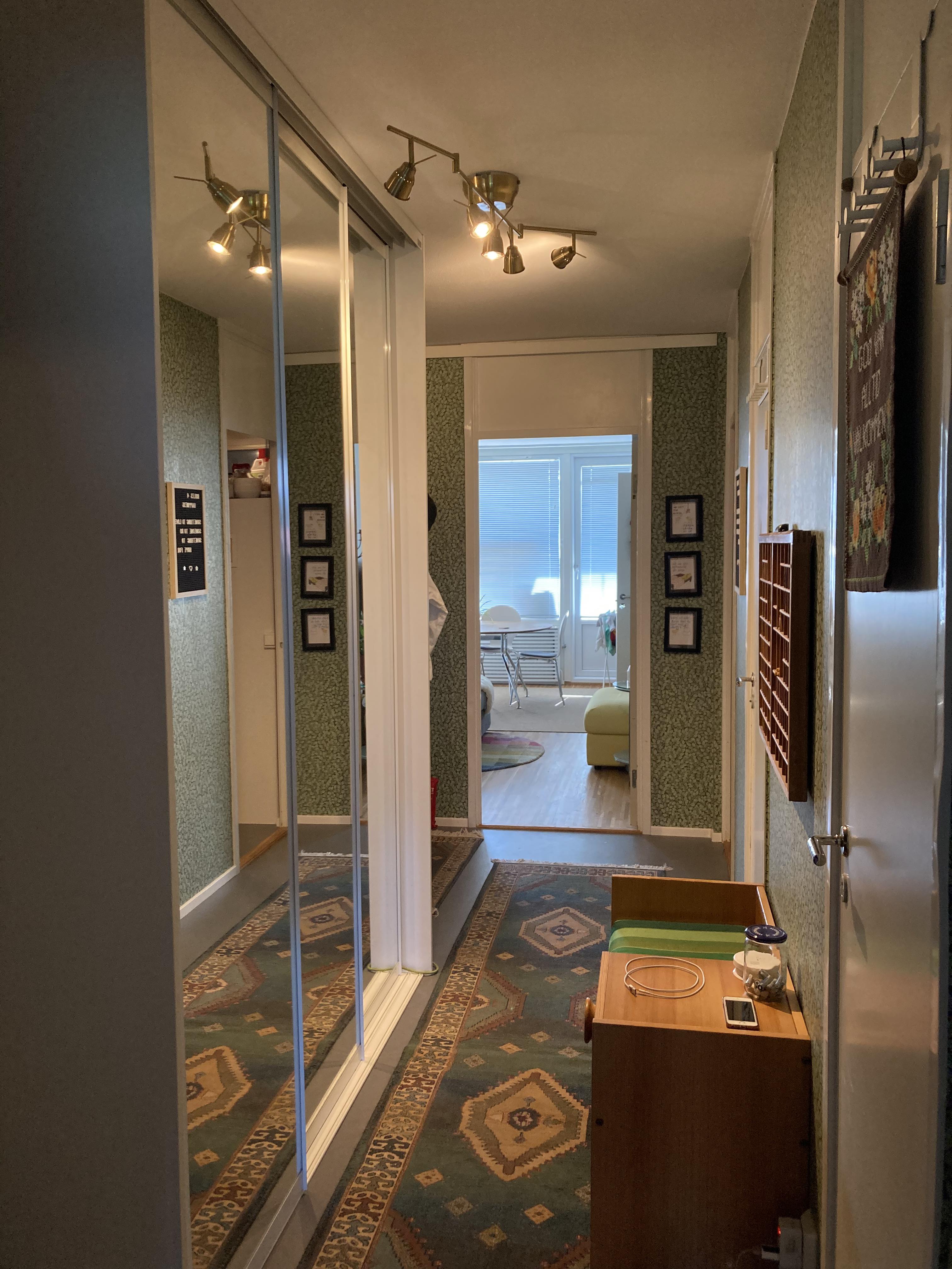 BEDROOM 1 -8 sqm -Window with a nice view of the greens outside -Furnished with 120 cm bed, study corner, storage shelf for clothes and books. TV with chromecast. Big mirror. Storage under bed. Wall shelves -Rent: 5800 SEK FYI -Flat is 73 sqm -Rent is including all (electricity, wifi, water, heating) -Deposit One months rent -Home insurance is mandatory -2 month notice period -The apartment also has a small guest room that can be used if friends or family are visiting :) -I have three bikes that you are welcome to use SURROUNDINGS 3 min walk to Helenelund centrum where you will find for example Supermarket, pharmacy, post office, gym, restaurants 5 min walk to Helenelund Station. Commuter train then takes you to central Stockholm within 10-13 minutes 10 min with bike to: Kista galleria, Sollentuna centrum. Tegelhagen beach 5 min WHO ARE YOU A relaxed and somewhat social student, who just like me can appreciate the benefits of living together. I have lived in a student corridor for many years and thought that solution worked well. It is fun to live with someone, but that you have your own room where you can be at peace and have your own space, for example own shelves in the kitchen and bathroom. Separate households - one apartment. I picture that we will become good friends (would be quite stiff otherwise) and feel comfortable and relaxed with each other, and also invite to share each others friendships. Although of course you can close the door to the kitchen or living room and have a completely own hang out with your friends We treat each other respectfully, thoughtfully, and doing our dishes, etc. As you should in a shared accommodation for everyone to feel comfortable and well. It is both okay and welcome to set up with dinner, party, sleepovers, etc. I want the home to live a little Maybe we can cook together sometimes or chill and watch series Just examples. One thing I want to mention, however, is that I am looking for a tenant, we will not share the apartment in exactly the same terms or live as in a collective in that way. You can completely decide how you want it and do the things you want in your own bedroom and your parts of the common areas in the kitchen, bathroom, etc., but the rest of the apartment I decorate, furnish, and mainly have my stuff on. You have of course access to the entire apartment though (except my bedroom and the other tenants bedroom then). WHO AM I Christina, 33. Three things that puts me in a good mood: spending time with friends, travelling, dancing. Find me on Instagram (chrstnjlrs and levehelenelund) if you want to snoop )