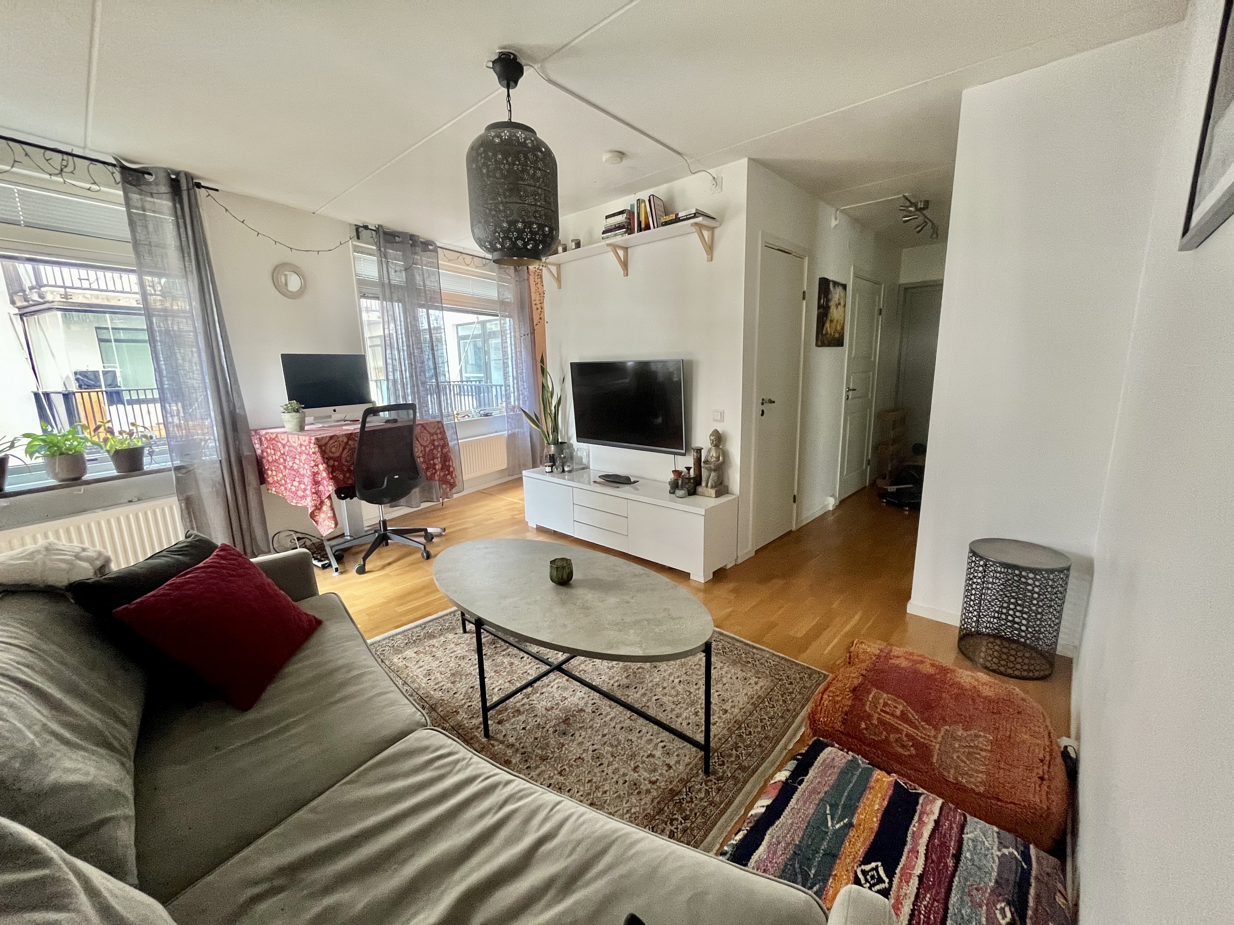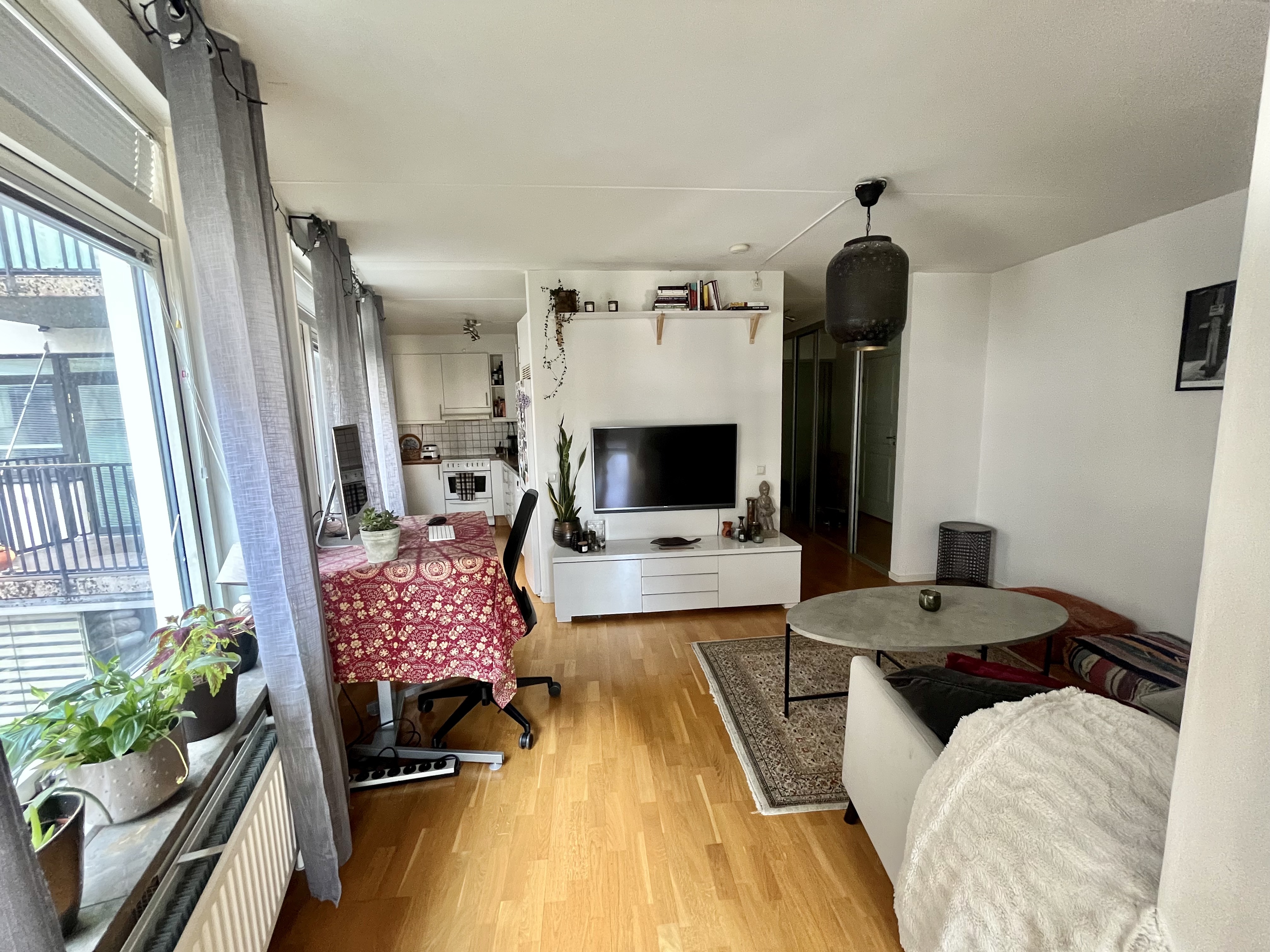 Vi hyr ut vår lägenhet nära Solna centrum på grund av jobb och studier på annan ort. Lägenheten har 2,5 rum och kök samt en uteplats med många soltimmar. Planlösningen är öppen, med goda möjligheter att inreda efter fantasi och behov. Köket är komplett med spis, kyl, frys och mikro. Det finns egen tvättmaskin med inbyggd torktumlare i badrummet, samt gemensam tvättstuga i föreningen. Det finns även möjlighet att hyra en gemensamhetslokal i området. Läget är utmärkt, precis intill både tunnelbana och bussar samt en kort promenad från en pendeltågsstation. Härifrån kommer du in till centralstationen på bara 10 minuter. I området finns shopping och restauranger i Solna centrum, det är även nära till skola och förskola. Uthyres omöblerad 13500 kr/månad inklusive bredband, el, värme och vatten Rökning ej tillåtet Husdjur och barn tillåtet Två månaders deposition We are looking to rent out our apartment near Solna centrum because of studies and work elsewhere. The apartment has 2.5 rooms and a kitchen, as well as a patio with many sun hours. The layout is open, which gives a good opportunity to decorate according to your own imagination and requirements. The kitchen is complete with a stove, fridge, freezer and microwave. There is a washing machine with built-in dryer as well as the option to use a shared laundry room in the housing association. It is also possible to rent a shared local in the area. The location is great, very close to the metro and buses as well as a short walk from solna train station. From the apartment you can reach the central station in only 10 minutes. In the area there is shopping and restaurants in Solna centrum, there are also schools and daycares nearby. Rented unfurnished 13500 SEK/month incl. internet, electricity, heating and water Smoking not allowed Pets and children are allowed Two month deposition