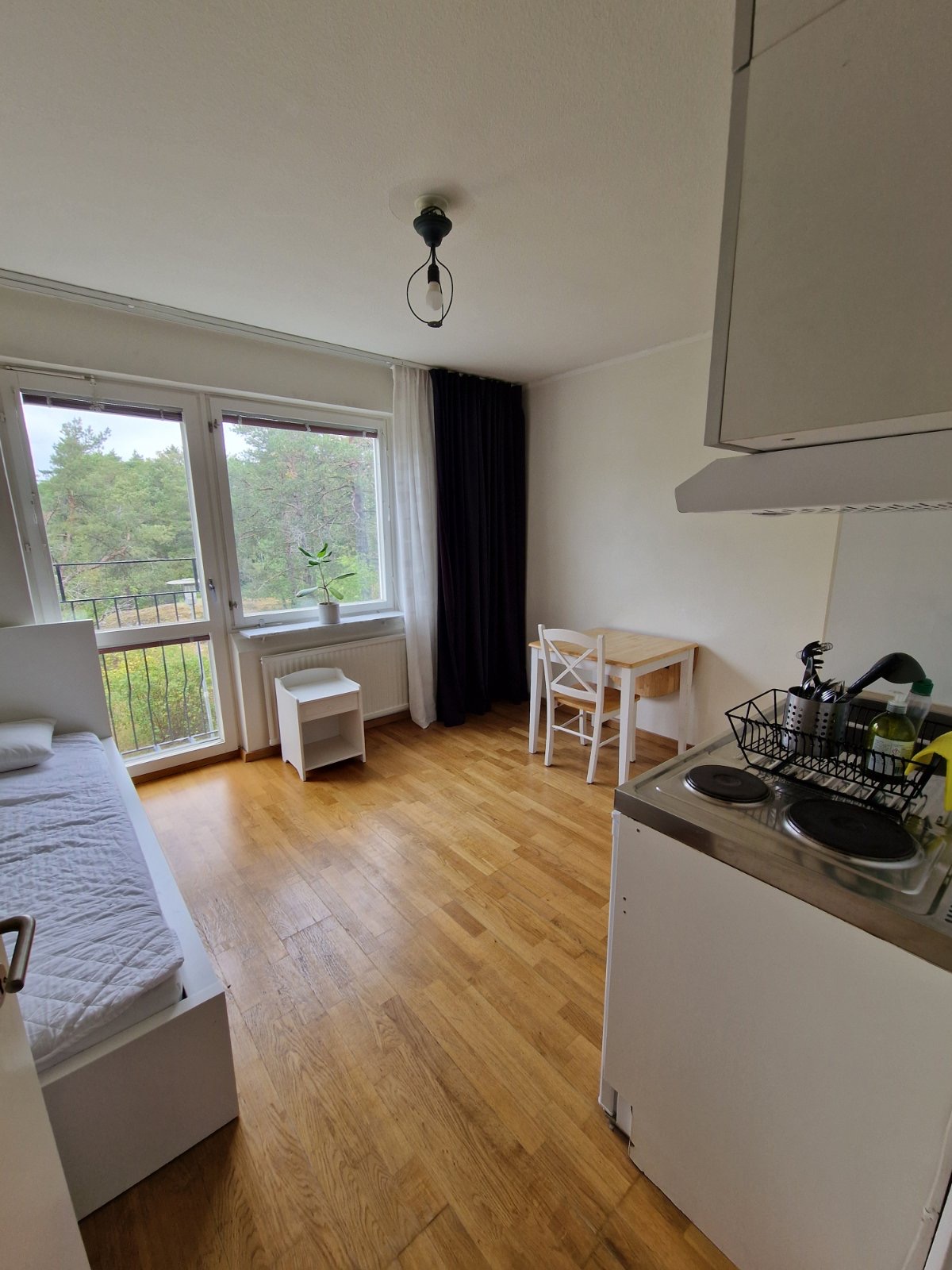 Den här bostaden har egen ingång samt eget badrum och kök. Vi står för möbler samt köksredskap. El och internet ingår i hyran. Fint och lugnt område nära till både skog och strand, men också nära tunnelbanan Västra Skogen, där blåa linjens båda grenar möts och tar dig till stan på mindre än 10 minuter. Vi är ett par med två barn. Vi söker dig som är lugn, skötsam och enkel att kommunicera med.