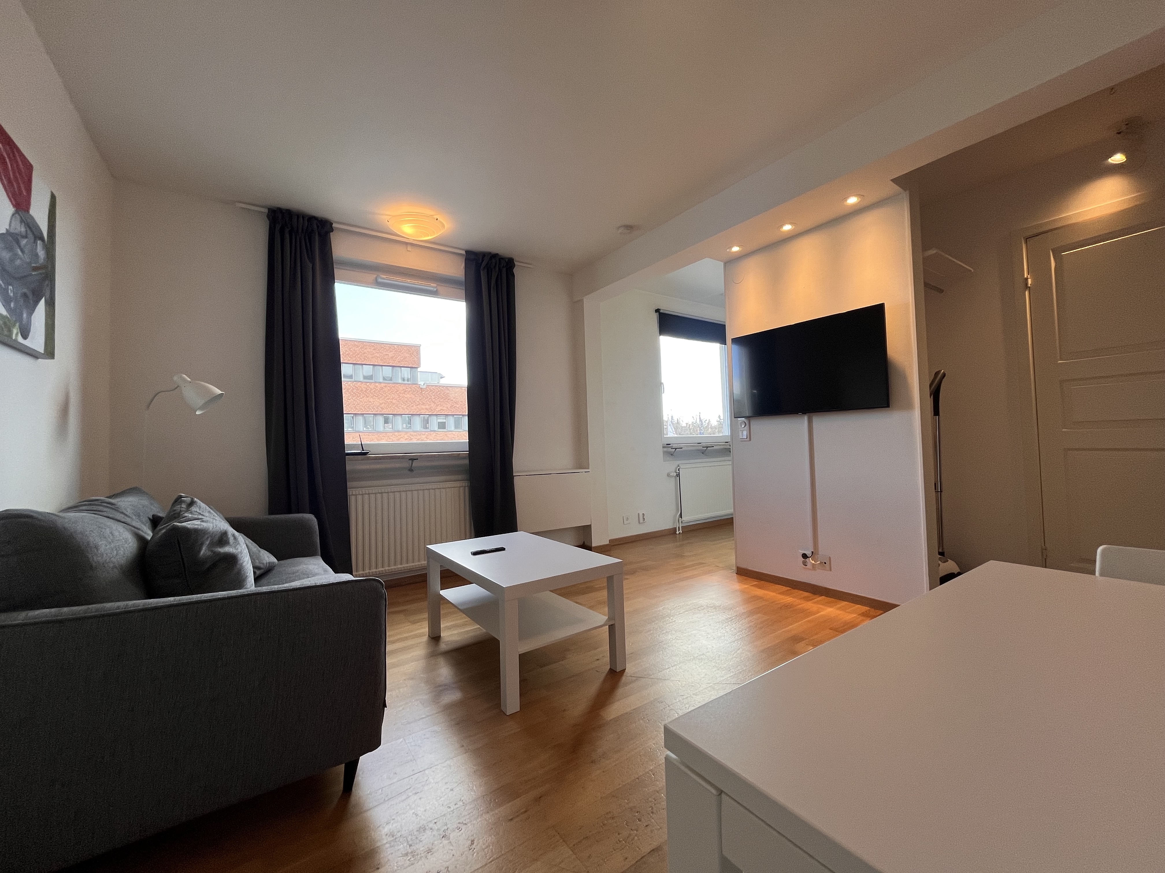 Varmt välkomna till denna fräscha och väldisponerade bostad belägen mitt i Huvudsta Centrum. Här erbjuds en mycket ljus och tilltalande bostad med närhet till det mesta vardagen kräver. Med en rymlig balkong och vacker utsikt, öppen planlösning med köksö och väl tilltagna sällskapsytor samt moderna lösningar. Helt enkelt en bostad för den kräsne. Ingår i Hyran: Värme, TV (Telia), Internet WiFi. - Tunnelbana 50 meter från huset och tar er till Stockholm central på 8 minuter. - Huvudsta centrum finner ni under huset. Där hittar ni matvarubutiker, café och restauranger samt service som tandläkarmottagning, frisör och gym. Lägenheten kan antingen komma omöblerad eller delvis möblerad med soffa, säng och TV. Har ni några funderingar Ni är välkomna att kontakta mig. ------------------------------------------ ENGLISH: A warm welcome to this fresh and well-appointed home from 2015 located in the center of Huvudsta. A very bright and attractive home is offered here, with proximity to most things that everyday life requires. High up in the house, with a spacious balcony and beautiful view, open floor plan with kitchen island and well-sized living areas as well as modern solutions. Simply a residence for the discerning. Included in the Rent: Heating, TV (Telia) and Internet WiFi. - The subway is 50 meters from the house and takes you to central Stockholm in 8 minutes. - You will find Huvudsta center under the house. There you will find grocery stores, cafes and restaurants as well as services such as a dentists office, hairdresser and gym. The apartment can either come unfurnished or partially furnished with a sofa, bed and TV. Do you have any questions You are welcome to contact me.