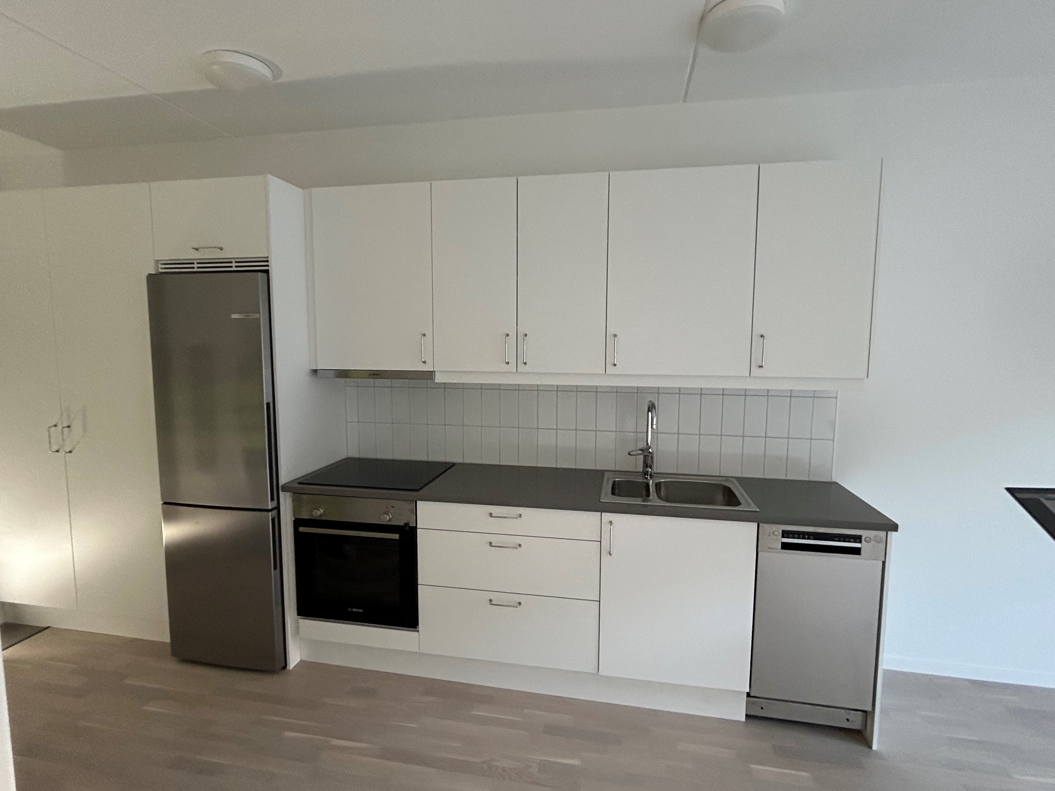 Välkommen till denna välplanerade och moderna 2 a om ca 39 kvm en stilfull och yteffektiv bostad där varje kvadratmeter är smart utnyttjad. Den rymliga sovalkoven har gardin fästen i taket för enkel och elegant avskärmning, vilket skapar en naturlig känsla av ett separat sovrum. Lägenheten är utrustad med säkerhetsdörr och tillhörande förråd för extra trygghet och praktisk förvaring. Köket håller hög standard med vita, eleganta HTH-luckor, diskmaskin samt övriga vitvaror från Bosch ett kvalitetsval som gör köket både funktionellt och stilrent. Det vackra ekparkettgolvet tillsammans med vitmålade väggar, tak och lister skapar en ljus, modern och tidlös atmosfär. Det helkaklade badrummet har stora vita blanka väggplattor och beige klinker på golvet. Här finns duschvägg i glas, spegelskåp med belysning, kromad handdukstork och krokar. Badrummet är dessutom förberett för både tvättmaskin och torktumlare. Fastigheten är rökfri och erbjuder flera bekvämligheter såsom tvättstuga, cykelrum, barnvagnsrum samt garageplatser för uthyrning. Den stora gröna innergården med pergola, sittplatser och gemensam odling ger en lugn oas för både avkoppling och umgänge. El och vatten ingår inte i hyran utan debiteras av oss, vilket innebär att du slipper teckna krångliga elavtal själv allt sköts smidigt och enkelt. Lägenheten är redo för inflyttning. Det enda du behöver göra är att ansöka, teckna en hemförsäkring samt ordna internetabonnemang om du önskar det. Bara några minuters promenad bort ligger Rågsveds tunnelbanestation, vilket ger snabba och smidiga förbindelser till övriga delar av staden. Observera att bilderna i detta dokument är illustrationer och kan avvika från verkligheten.