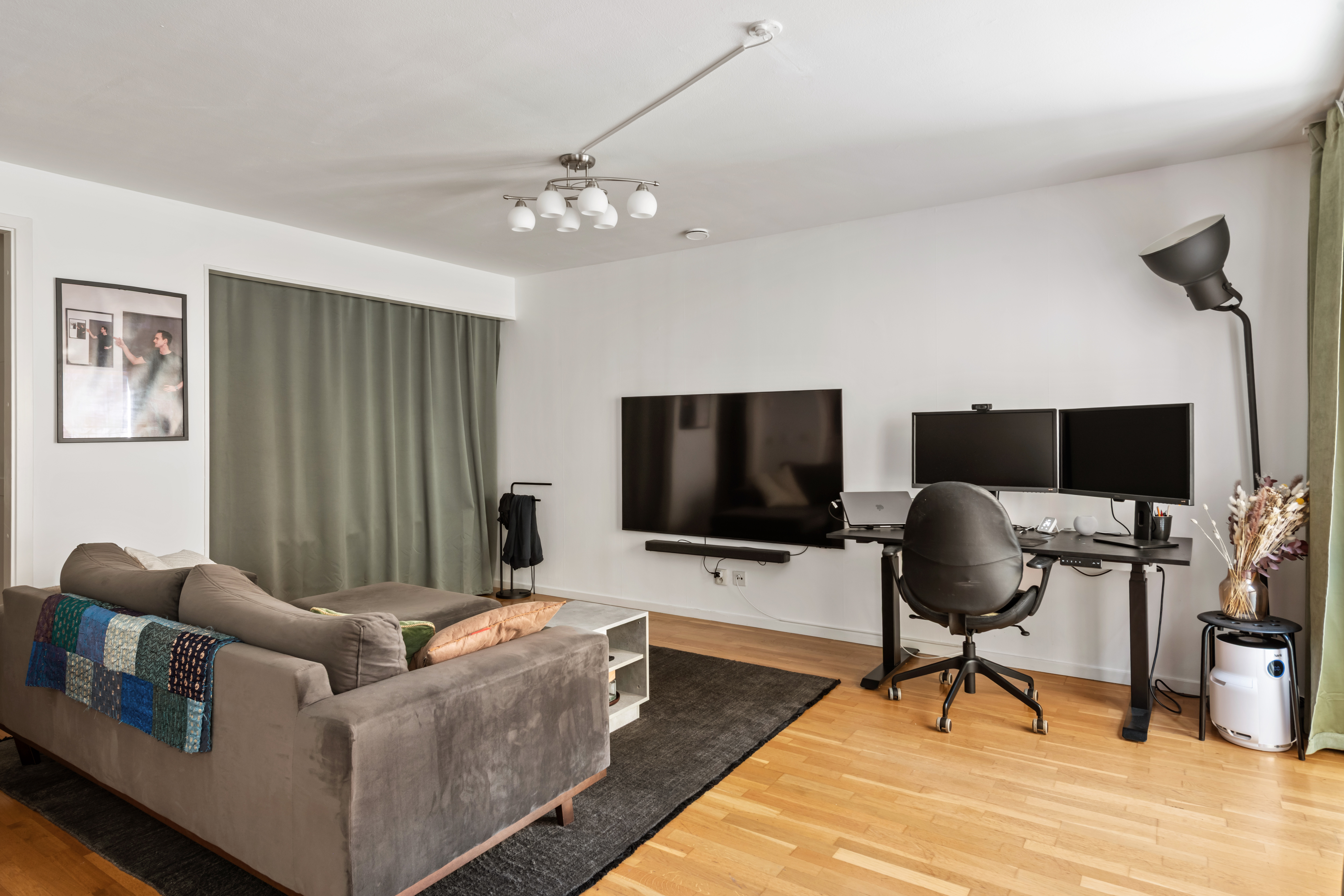 Öppen planlösning , högt i tak, sovalkov, bra med förvaring El tillkommer efter faktisk förbrukning internet ingår