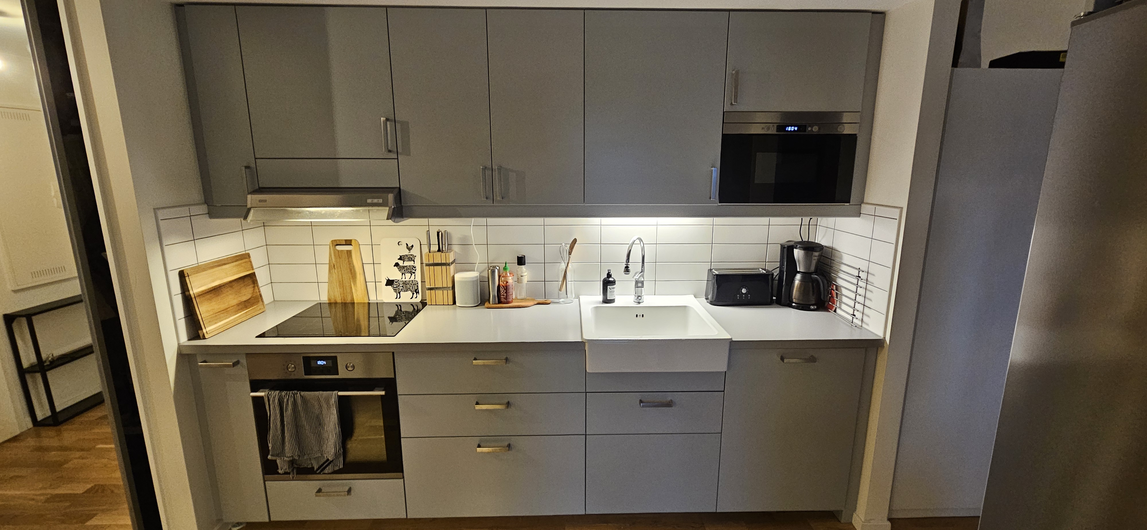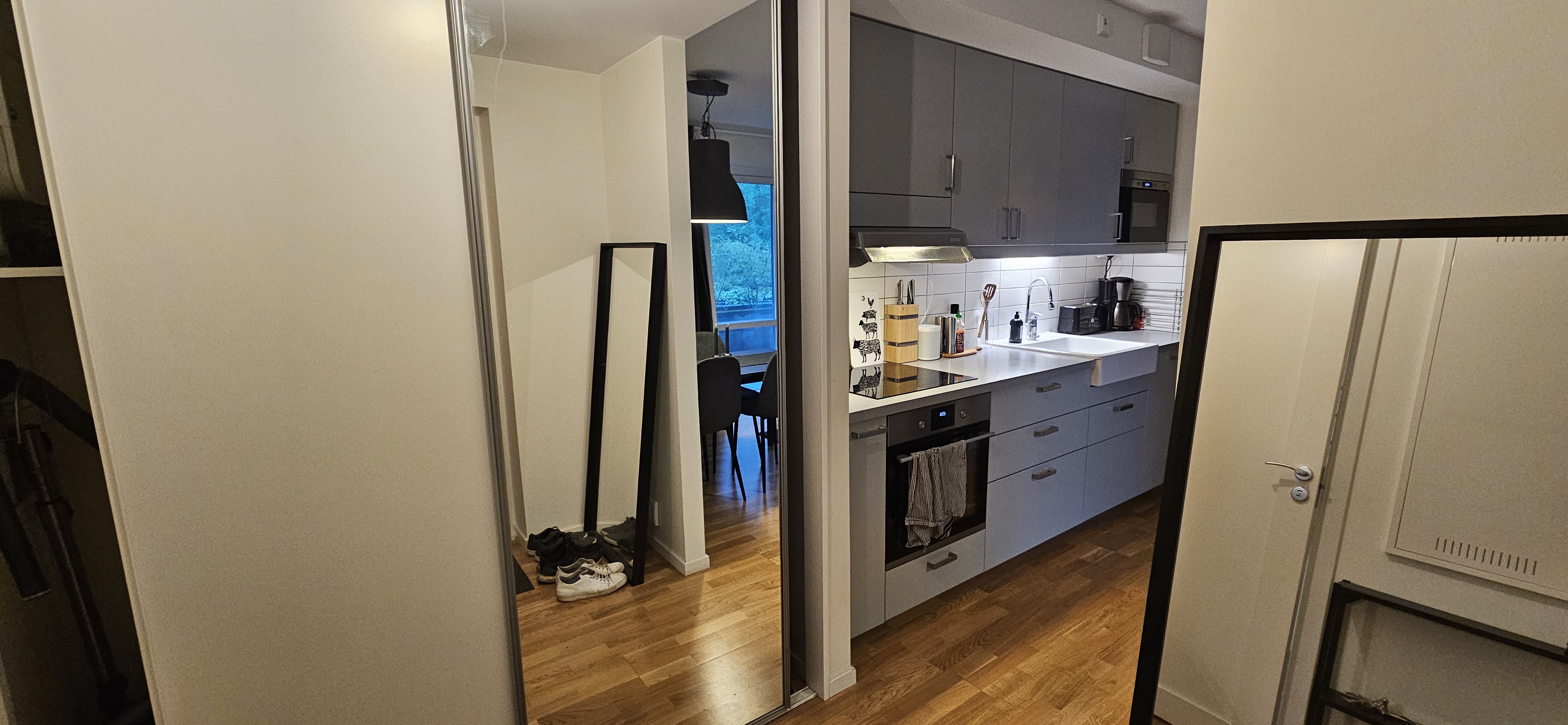Bostaden producerades 2017 och är i absolut toppskick med genomgående vackra parkettgolv och ljusa ytskikt. Optimal och trivsam planlösning som skapar en social atmosfär och erbjuder härliga ytor för att umgås med familj och vänner. Fastigheten har en genomtänkt arkitektur med stora fönsterpartier som ger lägenheten ett extra fint ljusinflöde. Ett toppmodernt boende med hög standard samt väl genomtänkta material- och interiörsval. Modernt kök i stilrent och funktionellt utförande, bra förvaringsmöjligheter och arbetsyta, en perfekt plats för den som älskar matlagning. Intill köket finns ett generöst vardagsrum med plats för en stor soffgrupp och övrig möblering. En ljuvlig balkong i fritt läge som nås från vardagsrummet. Balkongen är belägen med en fin utsikt mot grönområde.