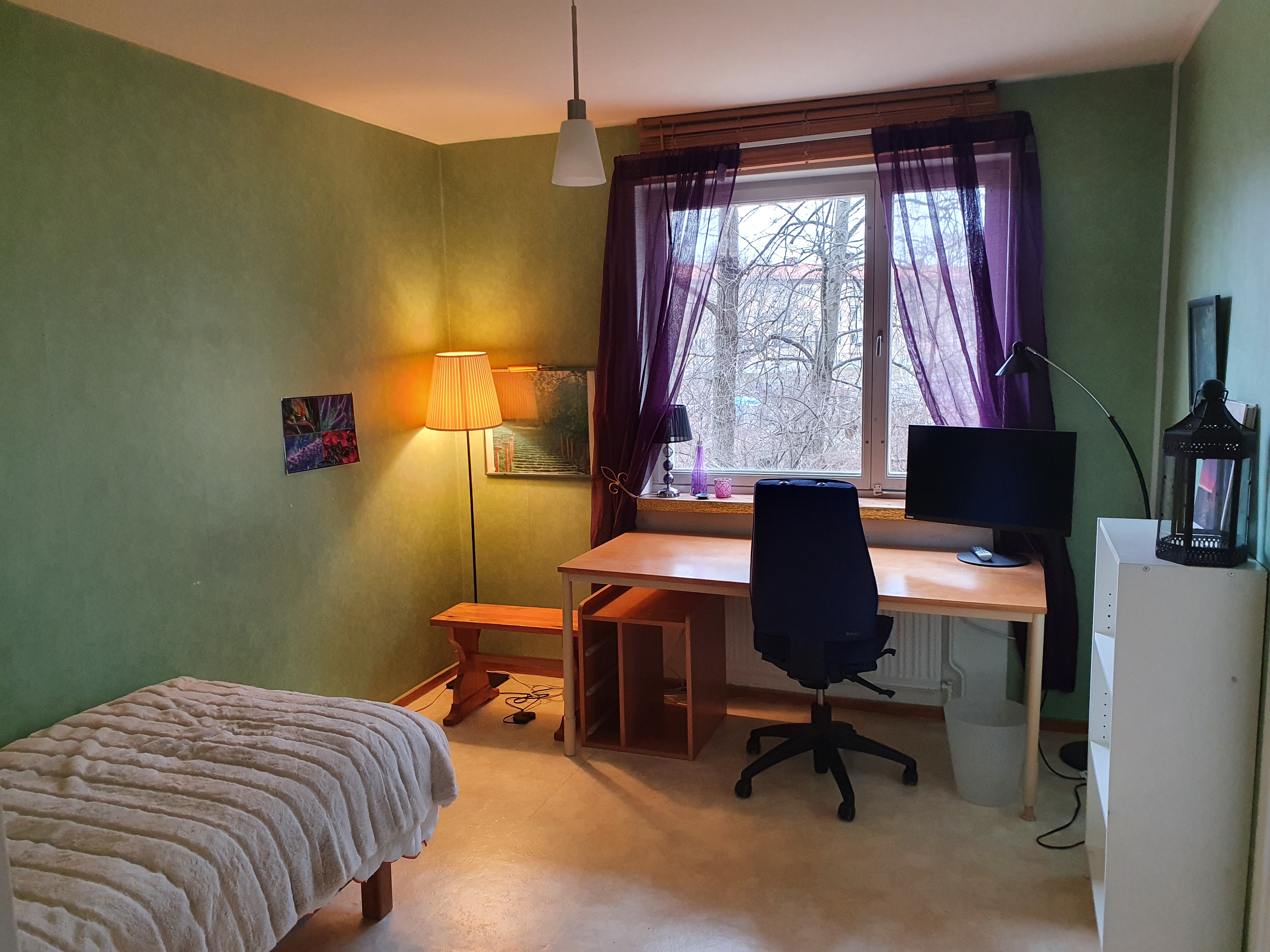 5 minuter från tunnelbanestation Hässelby gård. Rum 11 kvadrat i en del av trerummare. Trevligt, lugnt område. Stort fönster mot skogsparti, bakom Hässelby slott. Delat kök, badrum och hall. Två stora garderober, stort separat skåp. Plats för ett par flyttkartonger i källarförrådet. Tvättstuga i området i slutet på huslängan (150 meter). El och internet ingår i hyran. I lägenheten bor två äldre kvinnor därav endast kvinnliga sökande. Beläget invid Grimsta naturreservat. 15 minuter till bad i Mälaren.