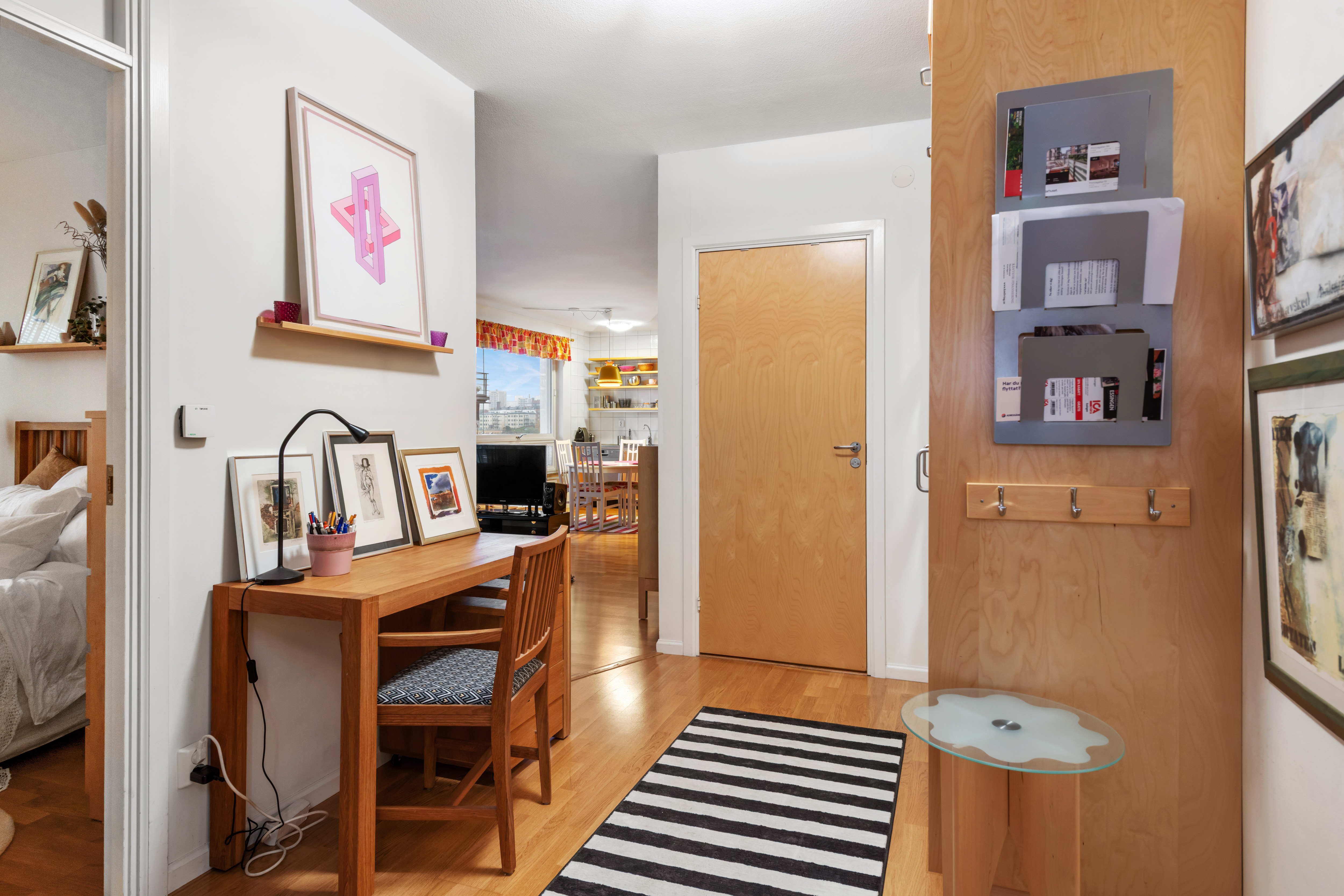 Vi hyr ut ett rum i vår lägenhet Förra hösten hyrde vi ut till en utbytesstudent och vi tyckte det var väldigt trevligt Vi är ett par med en snäll och social 2,5 år gammal son. Jag jobbar som ingenjör och min make med marknadsföring. I rummet finns en säng med förvaring, ett litet skrivbord och en garderob. Vi delar badrum (här finns tvättmaskin och torktumlare) och kök, tillgång till balkong finns. Tvättstuga finns i bottenplan. Runt knuten finns busshållplats, på ön finns badbryggor (se bild) gym, restauranger och caféer.