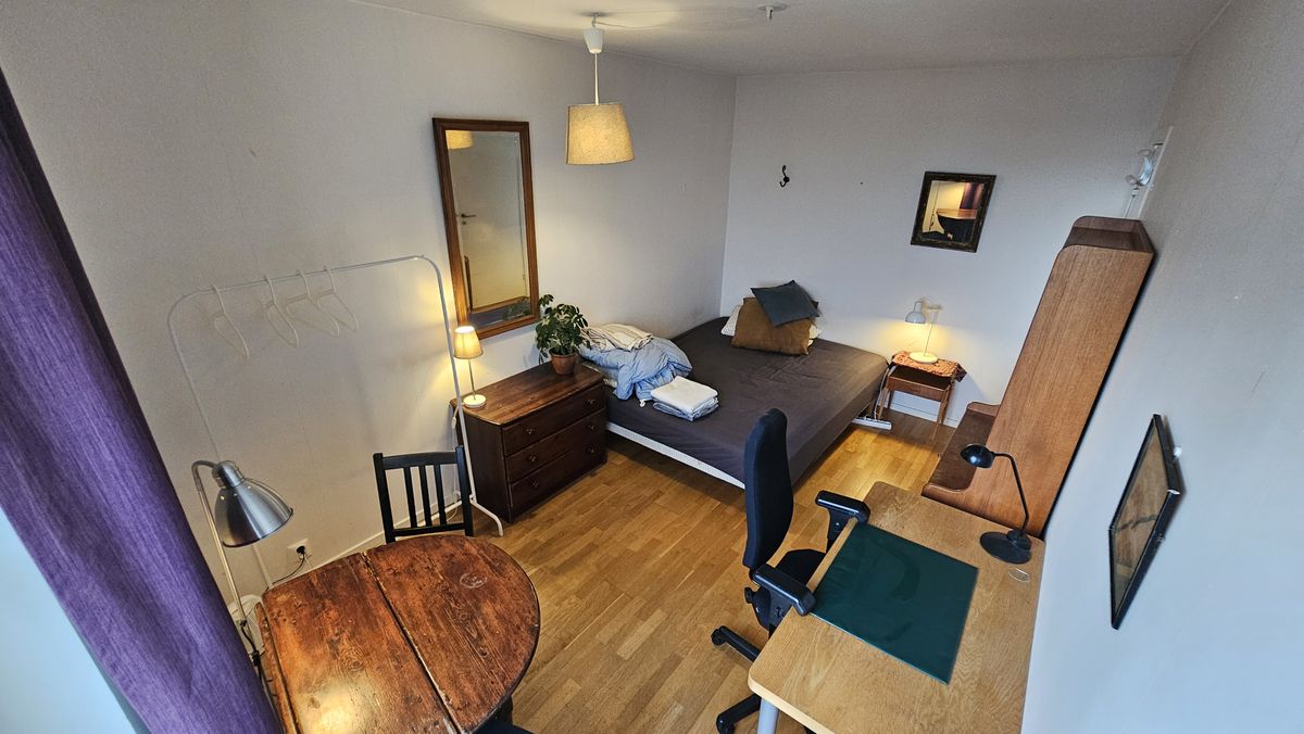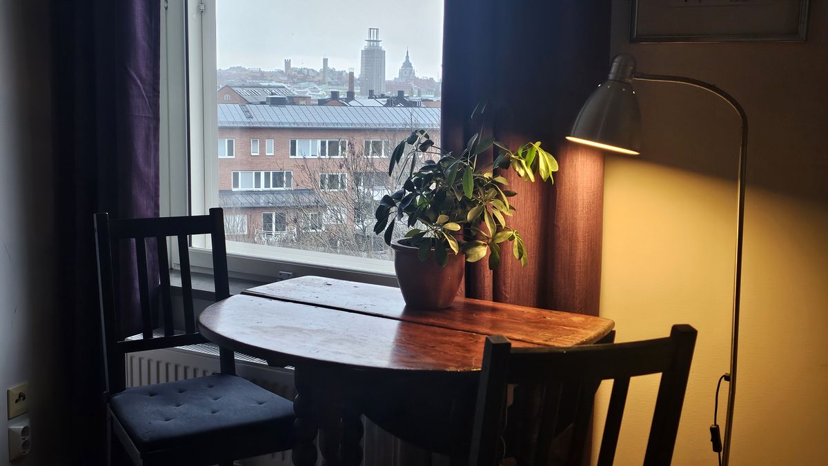 Vida utsikter / Wider views of Södermalm -- Free from July 15. No extra fee, rent is 7250 SEK monthly, all expenses included. Deposition 7250. Under the roof nocks on top of Södermalm a room with a view is rented on short or long term. Shared kitchen, two WC, two balconies in a old fashioned furnitured five room apartment. Electricity, laundry and WIFI is included. Parks Tantolunden and Årstaviken are around the corner. Many different transportations just outside the door, such as buses 3, 4, 55, 74 as well as the commuter train and the subway at 5-10 minutes walk. There is also a cat living in the apartment. Could also be rented short periods. Reply to the advertisement with a few words about yourself. Högt upp på Södermalm i nybyggt hus med vida utsikter över stadens taknockar uthyres ett rum på lång eller kort tid. Del i kök, husgeråd, två WC, två balkonger och gammeldags möblerad femrumslägenhet. Elektricitet, tvättstuga och WIFI ingår i hyran. Tantolunden och Årstaviken in på knuten. Bussarna 3:an, 4:an, 55:an, 74:an är utanför dörren samt pendeltåg och tunnelbana på 5-10 minuters promenadavstånd. Det finns också en katt i hushållet. Svara på annonsen med ett par rader om dig själv.