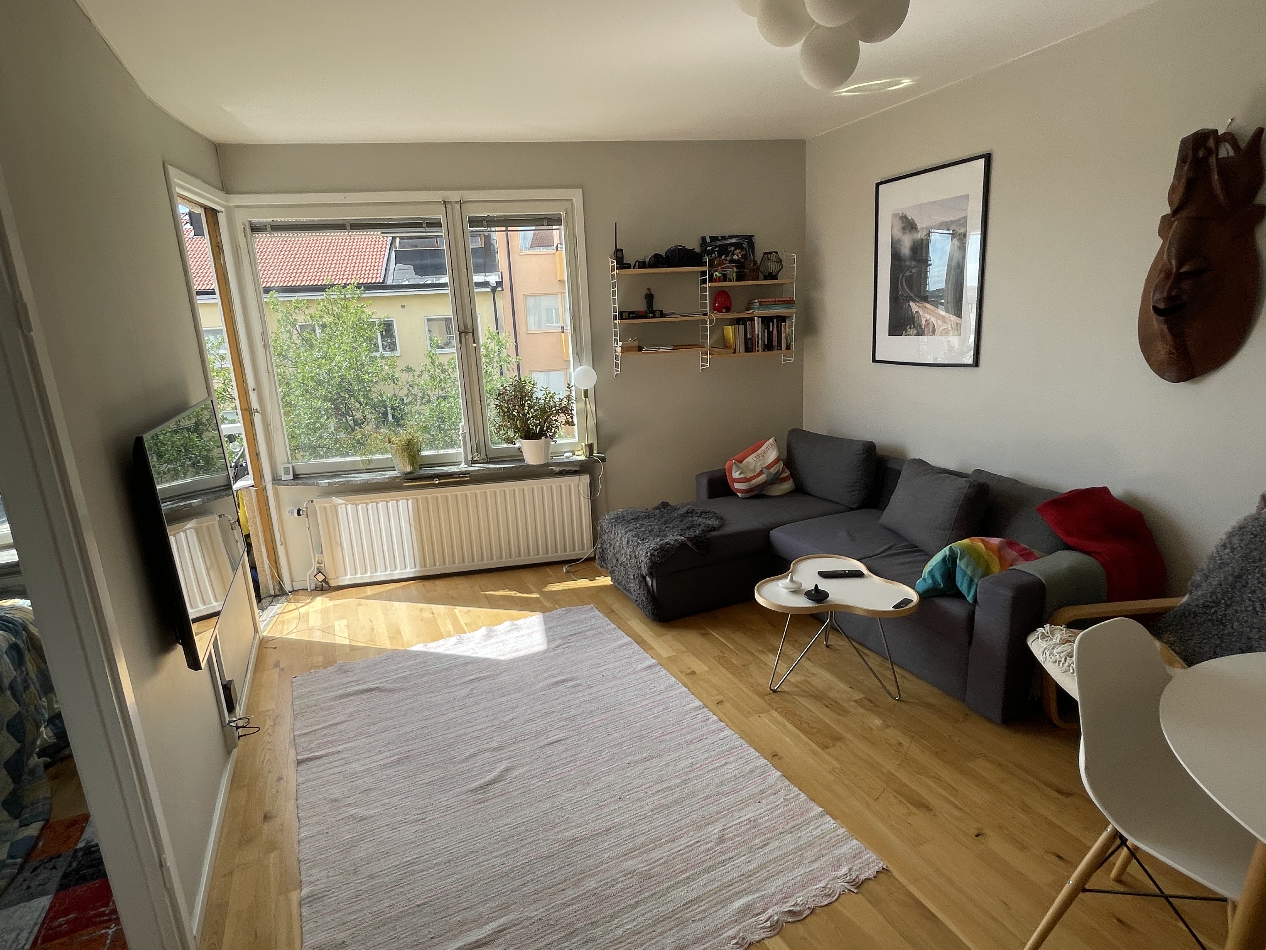 Riktigt fin lägenhet på Lilla Essingen. Högst upp med fantastisk utsikt. Jag kommer själv bo i lägenheten men har positiv erfarenhet av att ha en inneboende och vara inneboende. Du kommer sova i antingen sovrummet eller vardagsrummet. Det här får vi diskutera. I vardsgsrummet finns en stor bäddsoffa som är riktigt skön, dock rätt ljust här pga stora fantastiska fönster med härligt ljusinsläpp (på gott och ont). Jag själv jobbar rätt mycket, ibland på kontor, en del från utomlands men ibland hemifrån. Reser rätt mycket (när det inte är pandemi), när jag är hemma är jag en trevlig, glad lättsam typ. Du: ska också vara en easygoing, kanske student eller någon som också jobbar en hel del. Snabbt internet, el, vatten osv ingår självklart. Vh Martin