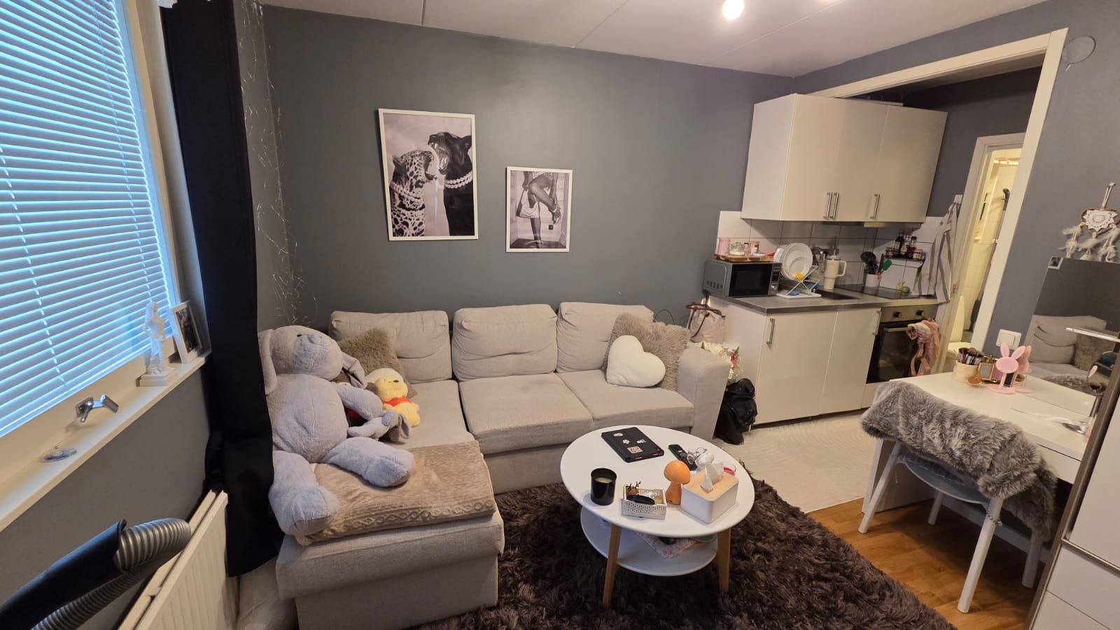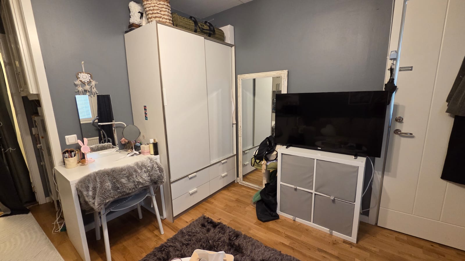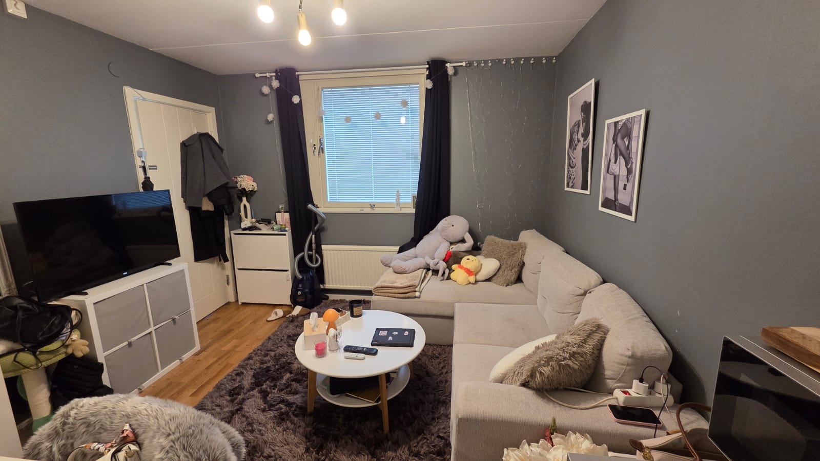 En smart planerad etta (uthyrningsdel) med stor kokvrå. Egen toa med Stockholms dusch. Du har tillgång till en stor tvättstuga med torkskåp samt ett litet gym och tennisbana. Nära finns en Ica butik. En buss finns nästan precis utanför som tar dig direkt in till stan. I kokvrån finns kyl med frysfack. Tekokare, Micro, induktionshäll med tre plattor samt en ugn. I hyran ingår värme, el, wifi, vatten och tvättstuga. OBS. I lägenheten ingår garderoben, byrån, klädhängare, klaffstolar med matbord samt lite annat. Detta ingår inte: sängen, drinkbordet, svarta hyllan i toan, de svarta stolarna samt inredning.