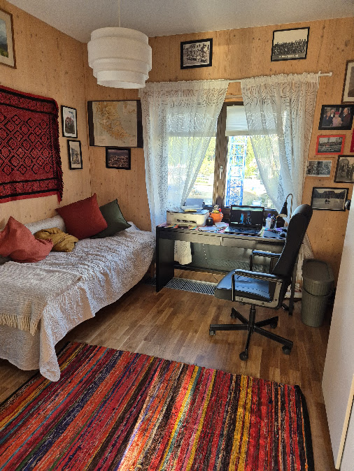 Toppmodern lägenhet med egen terrass mot väster, fönster i alla rum samt gemensam takterrass och gemensamt vardagsrum med kök i bottenplan. Alla boendekostnader ingår i hyran. Busshållplats finns 50 meter från huset. Rosendal ligger centralt i Uppsala men samtidigt mellan två skogar, Kronparken och Stadsskogen. Det unika med denna lägenhet är att den har fönster mot alla väderstreck utom mot söder.