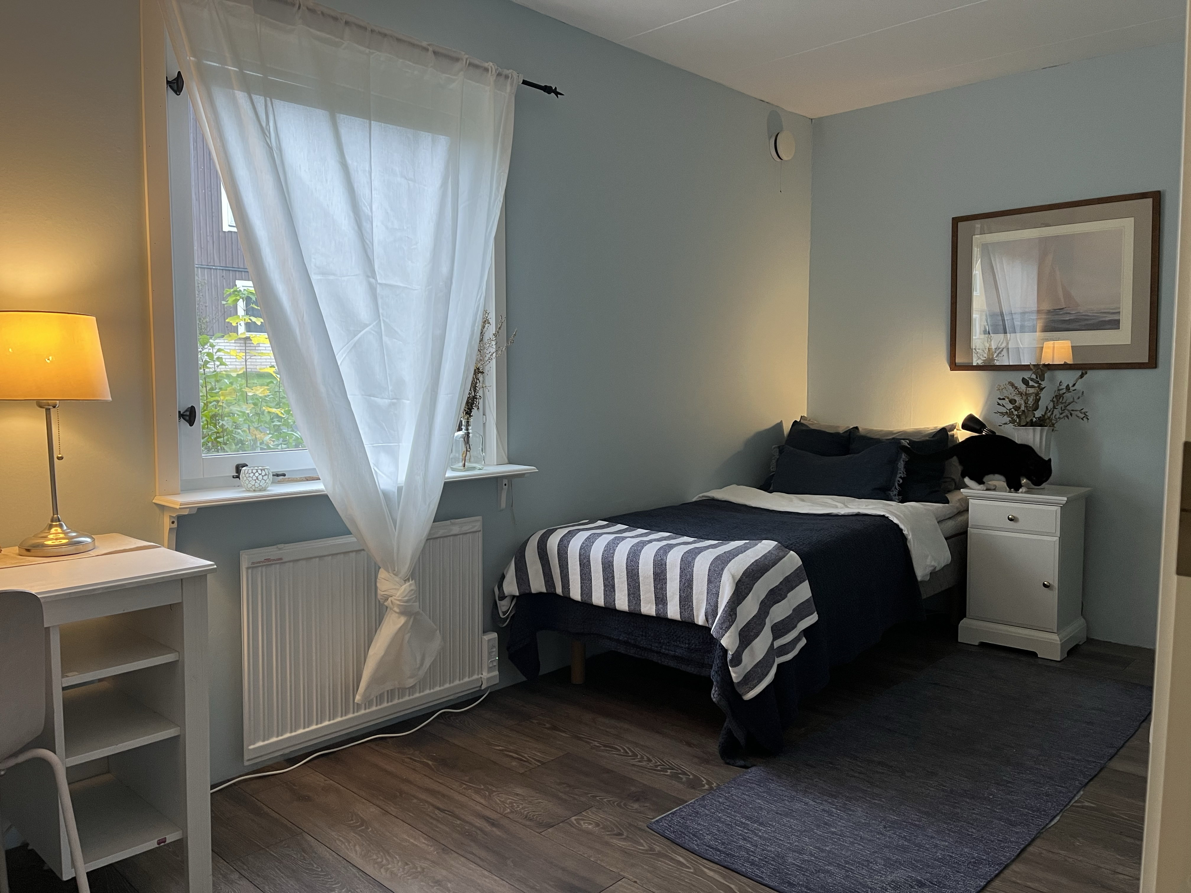 Rum uthyres till företag Molkom Fint, nyrenoverat rum uthyres till företag för en anställd eller konsult. Rummet ligger på bottenvåningen i en tvåplansvilla i ett lugnt område. Möblerat med bekväm Dux-säng, skrivbord och förvaring. Tillgång till kök, vardagsrum och delat badrum med badkar. Vi är en liten familj med barn och katt som bor i huset vi sover på övervåningen men vistas även på bottenvåningen dagtid. Nära natur, Coop och bra förbindelser till Karlstad.