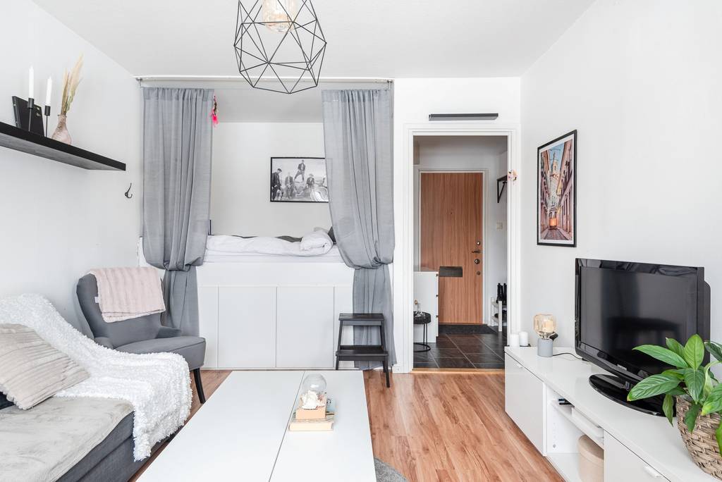 Lägenheten består av en välkomnande hall med förvaringsmöjligheter. Badrum med dusch, toalett och tvättmaskin. Stort vardagsrum med en sovalkov och större köks vrå med all nödvändiga maskiner som spis, ugn, kyl/frys (halva kyl och andra halvan frys), fläkt (självdrag) och micro. Lägenheten kommer möblerad med soffa, säng, soffbord, bar bord inkl. 2 barstolar, TV bänk och byrå i hallen. Det finns massor av utrymmen för förvaring under sängen och i hallen. I hyran ingår: -t Internet och TV (själva TV får du ombesörja själv) Det som tillkommer: -t El (denna lägger jag på hyran månadsvis då BRFen fakturerar mig verklig förbrukning månadsvis). Normal månads kostnad för elen ligger mellan 120-160 kr/mån -tHemförsäkring (denna köper du själv för dina personliga saker) Det är ca 50 m till busshållplats som lätt tar dig till Mitt Universitet, Sundsvall centrum och Sundvall central. Då vår dotter studerat klart och åter flyttat till Stockholm har vi även lagt ut bostaden till försäljning. Vår mäklare måste få tillgång till lägenheten vid behov för visningar (detta pratar vi mer om ifall du vill hyra). BRFen är ansluten till HSB och hyresgästen måste godkännas först innan hyresavtal kan upprättas. Hyresperioden är halvårsvis och kan förlängas tidigas en månad innan hyresperiodens slut. Ifall lägenheten säljs under hyresperioden är det enligt lag 3 månaders uppsägningstid från hyresvärdens sida eller ifall avtalstiden går ut tidigare är det det som gäller. Vid frågor och funderingar är det bara att skicka meddelande så svarar jag snarast möjligt
