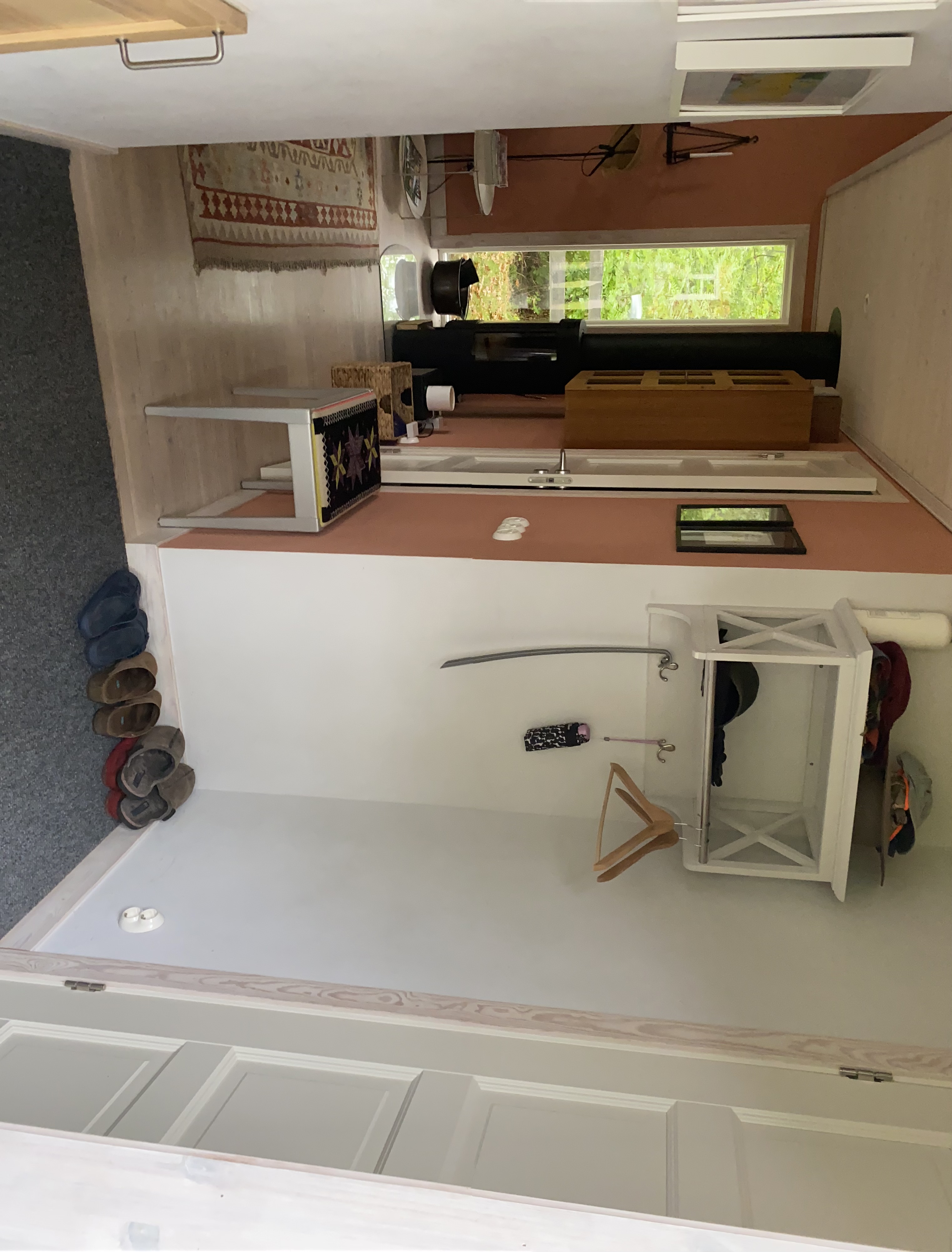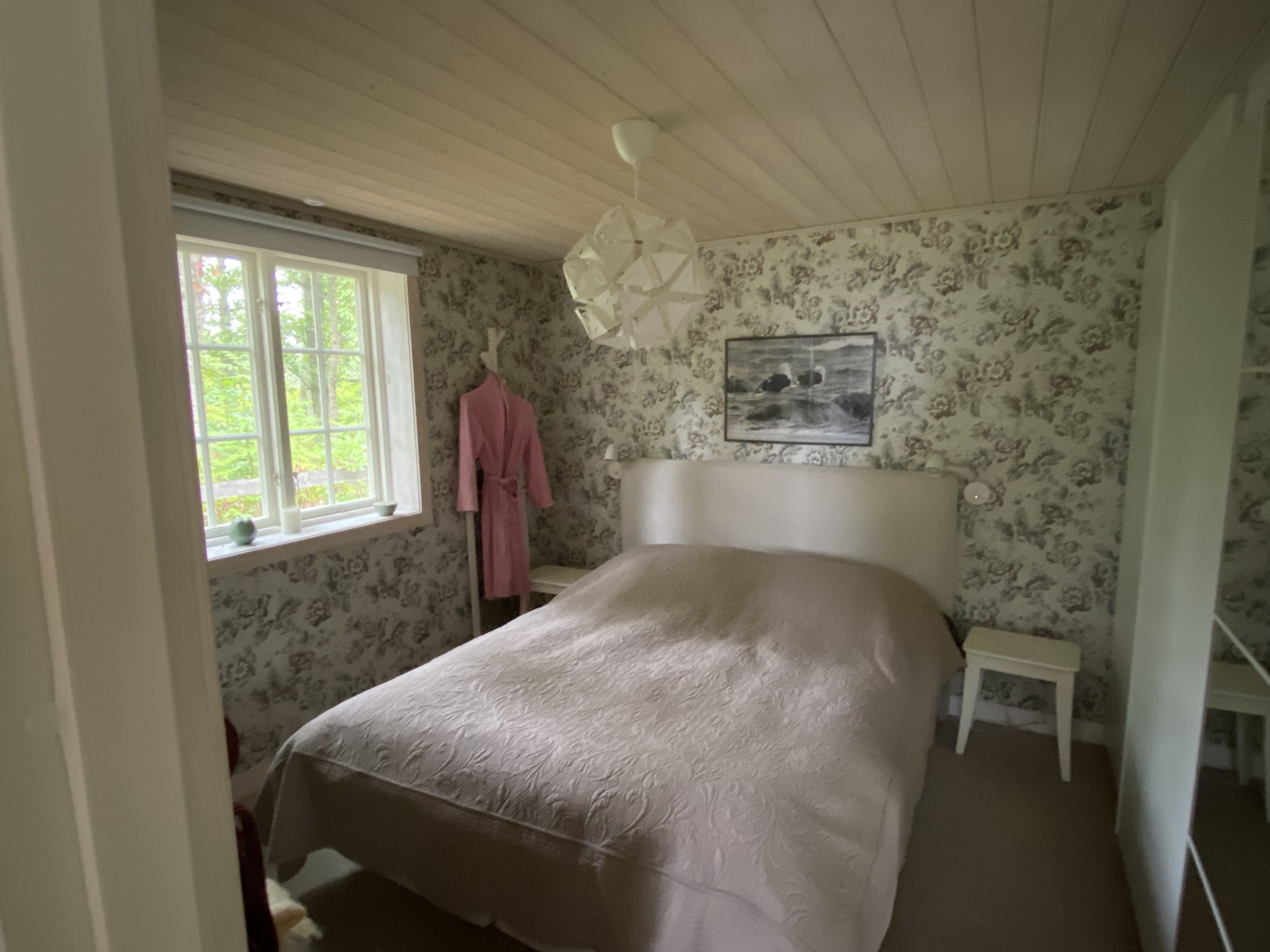 Storstuga med kök. Stora fönster med utsikt mot vatten. Sovrum med dubbelsäng , garderober och heltäckande matta. Helkaklat badrum med dusch, handfat och toalett, fönster i badrum. Liten hall. Hushållsel och vatten ingår. Tvättstuga i separat byggnad. Möjlighet till elladdning för elbil mot avgift. Uteplats. Busshållplats med förbindelser in till Mariestad finns 10 min bort.
