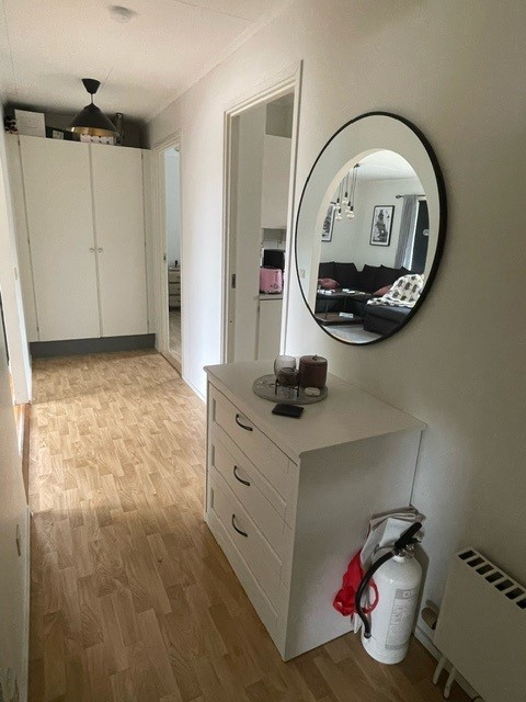Välplanerad lägenhet i lugnt hus och naturnära område. Lägenheten har rustats upp under 2025 där bla alla väggar målats, ny ekparkett i vardagsrummet, nya vitvaror i kök. Köksfläkten med värmeåtervinning är bytt sedan något år tillbaka. Här bor du lugnt med din egna balkong ut mot innergården med den stora gräsmattan. En parkeringsplats ingår i hyran men det går även bra att stå gratis på gatan, precis utanför entrén. Fiber finn inte i huset men mobilt bredband fungerar bra. Gemensam tvättstuga på markplan som delas av 3 andra lägenheter. Personligt gallerförråd i grannhusets källare. Värme (vattenburna radiatorer), vatten och sophantering ingår i hyran, hyresgästen skaffar eget abonnemang för hushållselen. Vi tar 1 månadshyra i depositionsavgift vid inflyttning som sen betalas tillbaka efter att man återlämnat lägenheten i det skick den togs över i. Observera att bilder i annonsen kan vara tagna i en liknande lägenhet och att planlösningen ej är skalenlig, vissa fel kan förekomma.
